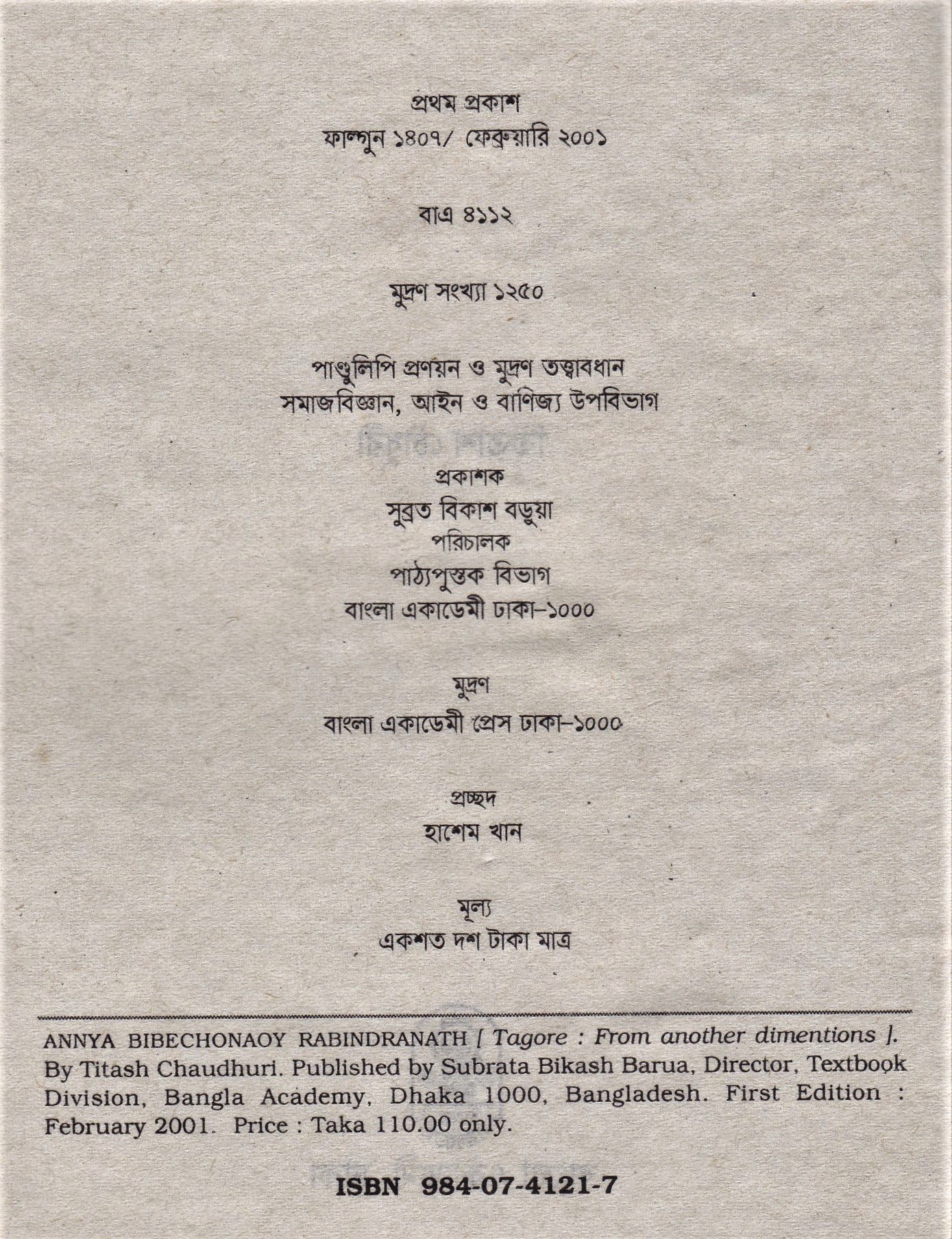 | ১ম প্রকাশ | ফেব্রুয়ারি ২০০১ |