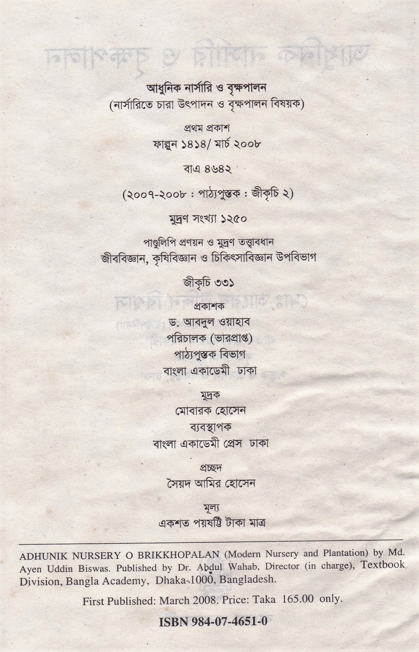 | ১ম প্রকাশ | মার্চ ২০০৮ |