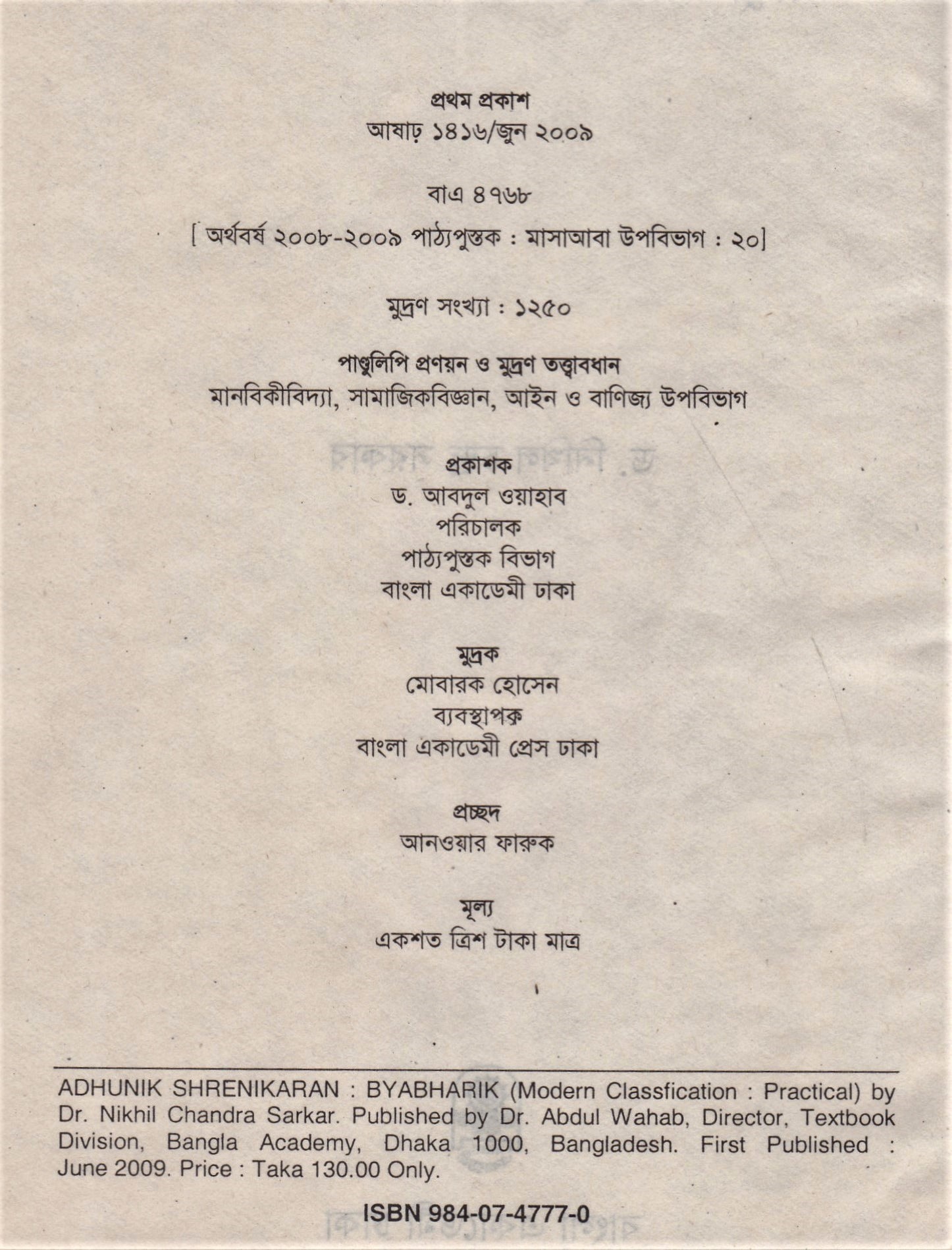 | ১ম প্রকাশ | জুন ২০০৯ |