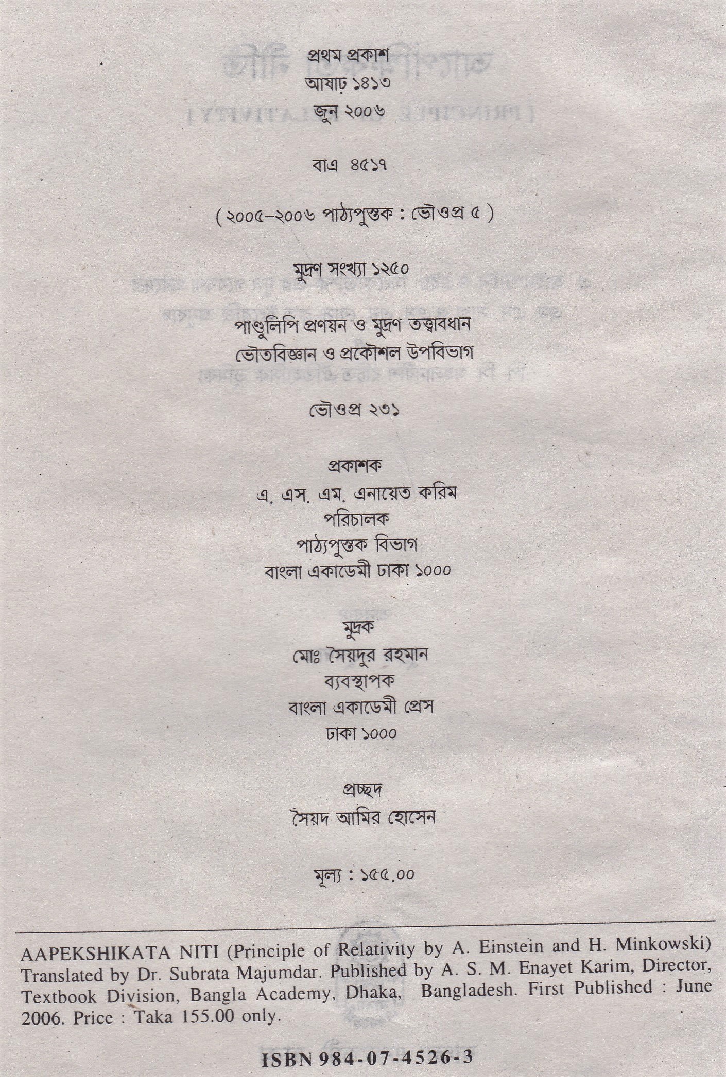 | ১ম প্রকাশ | জুন ২০০৬ |
