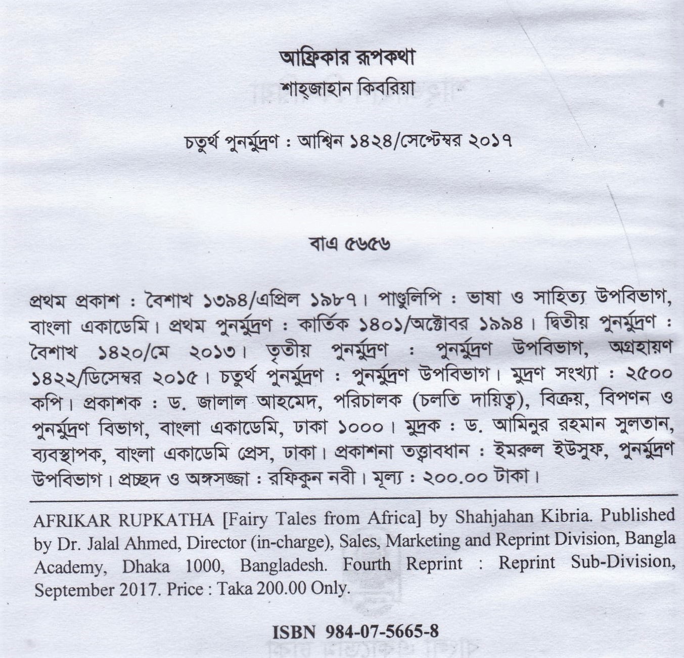 | পুন মুদ্রণ: | ৪র্থু পুনর্মুদ্রণ : সেপ্টেম্বর ২০১৭ |