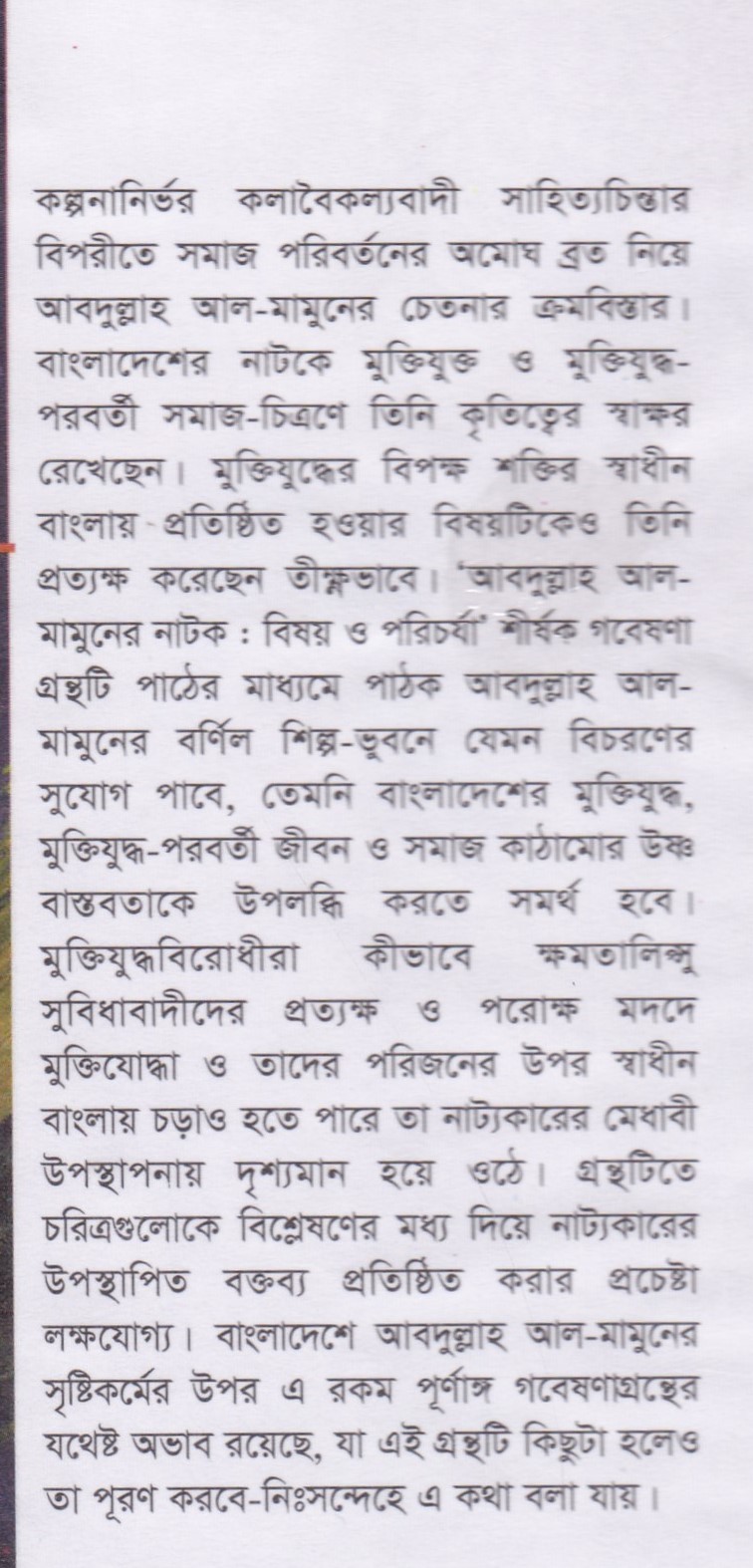 আবদুল্লাহ আল মামুনের নাটক : বিষয় ও পরিচর্যা