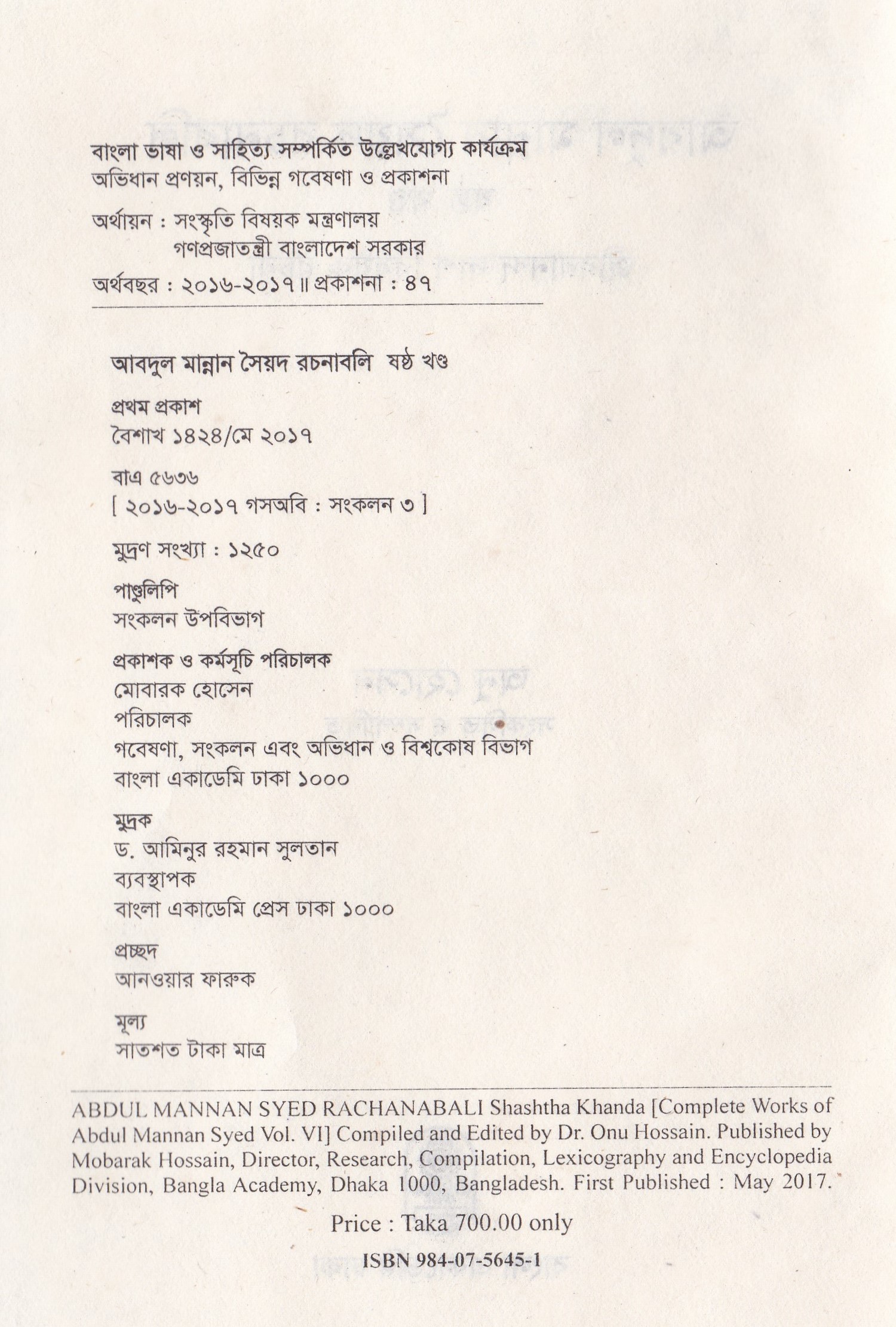 আবদুল মান্নান সৈয়দ রচনাবলি (৬ষ্ঠ খণ্ড)