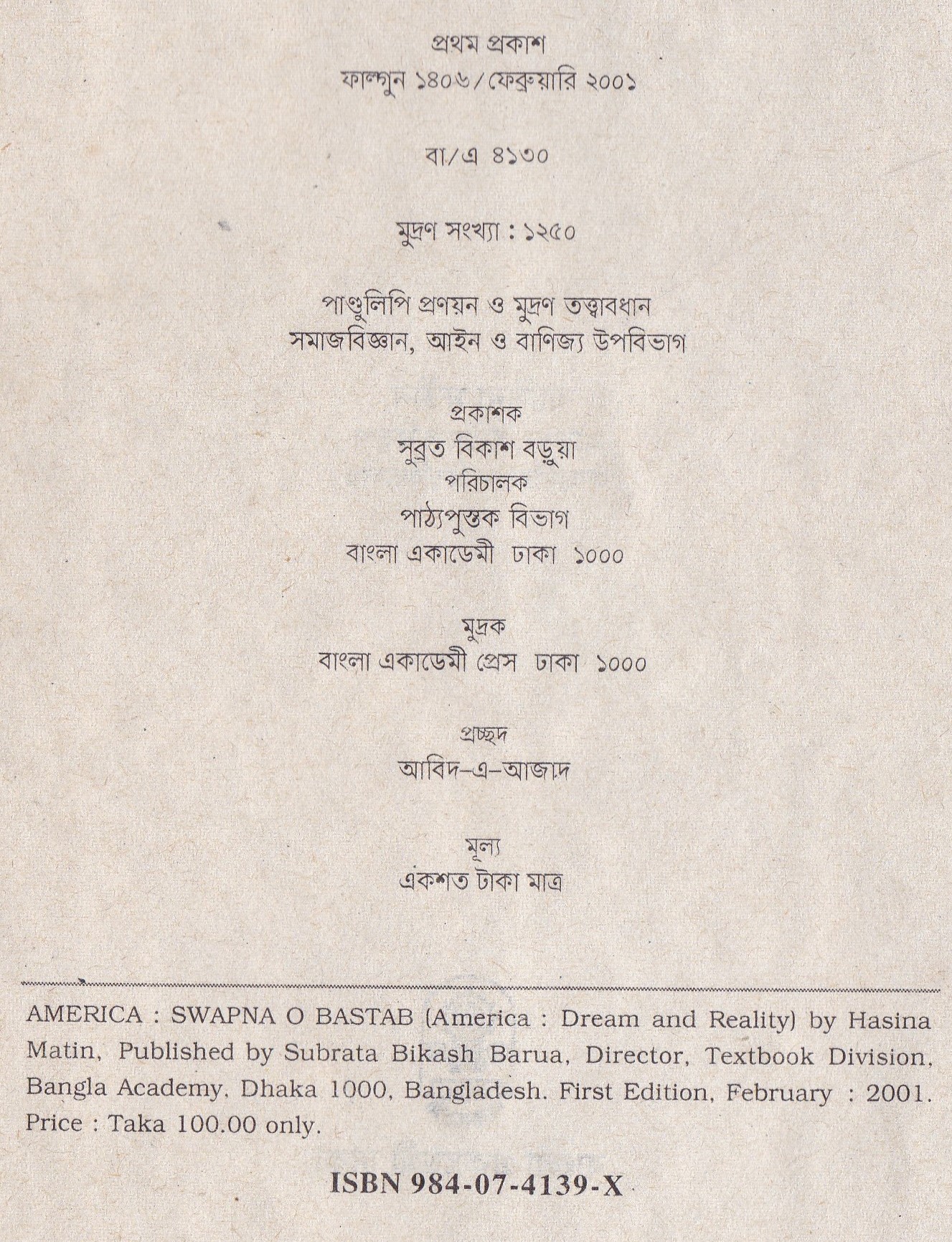 | ১ম প্রকাশ | ফেব্রুয়ারি ২০০১ |