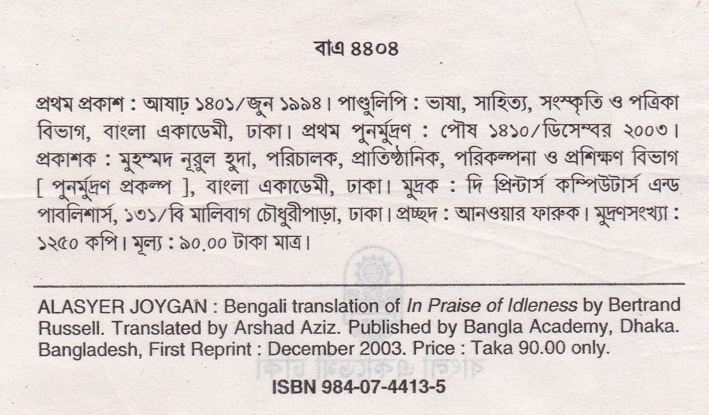 | পুন মুদ্রণ: | ১ম পুনর্মুদ্রণ : ডিসেম্বর ২০০৩ |