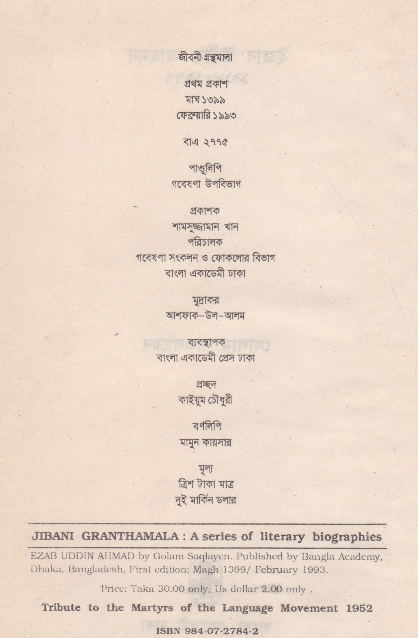| ১ম প্রকাশ | ফেব্রুয়ারি ১৯৯৩ |