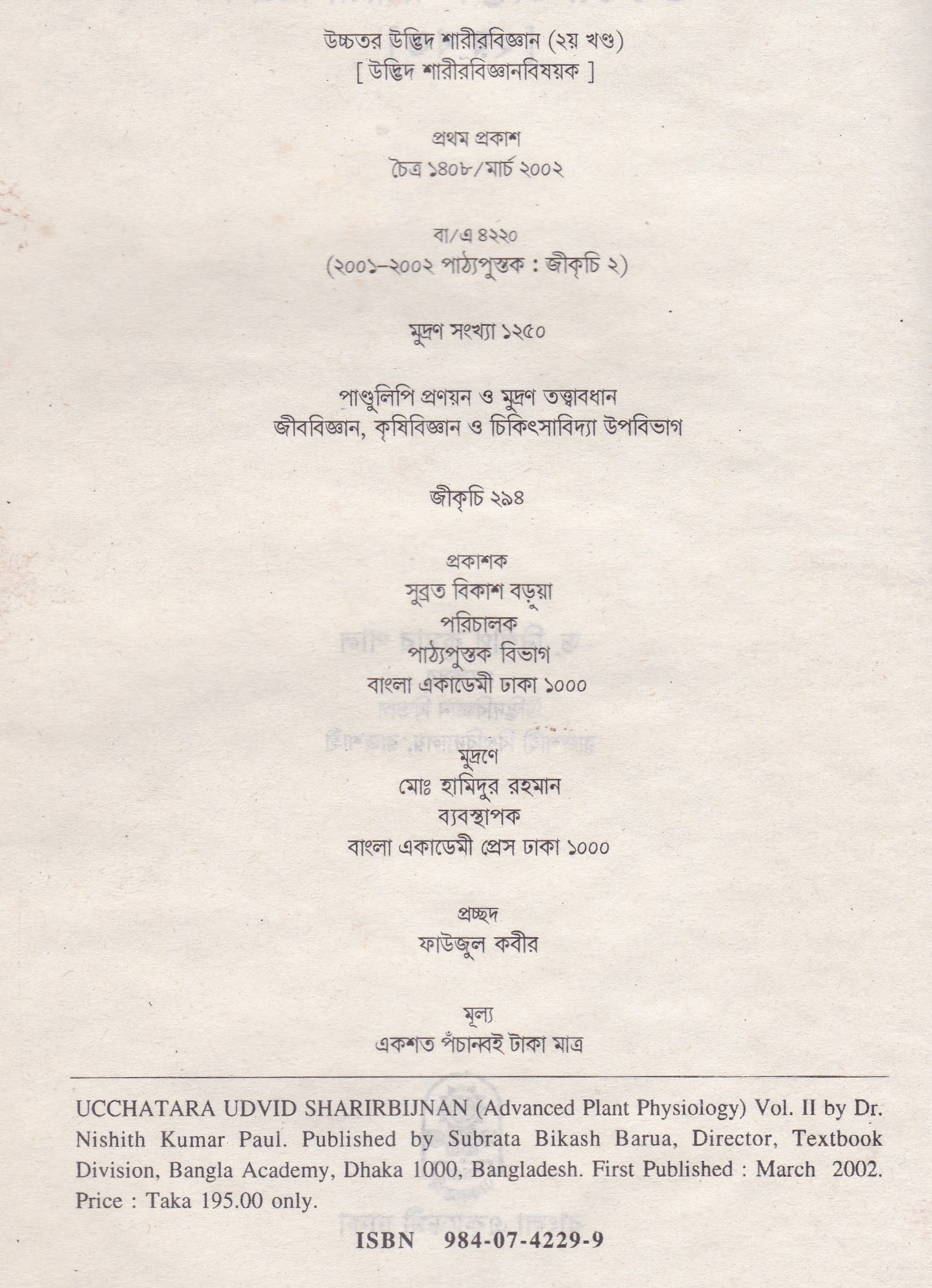 উচ্চতর উদ্ভিদ শারীরবিজ্ঞান (২য় খণ্ড)
