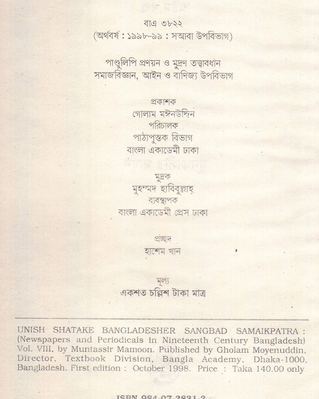 উনিশ শতকে বাংলাদেশের সংবাদ সাময়িকপত্র (৮ম খণ্ড)