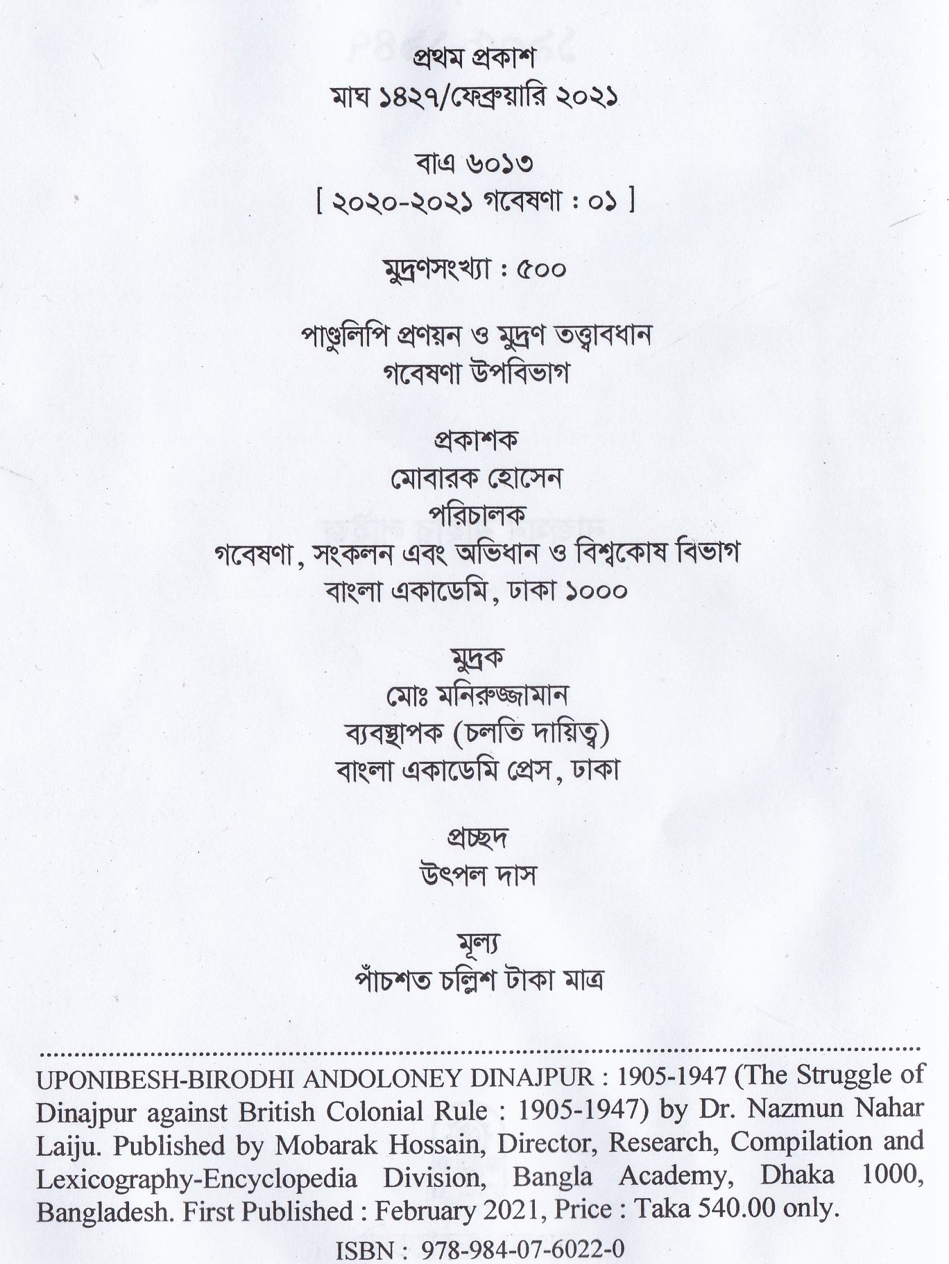 | ১ম প্রকাশ | ফেব্রুয়ারি ২০২১ |