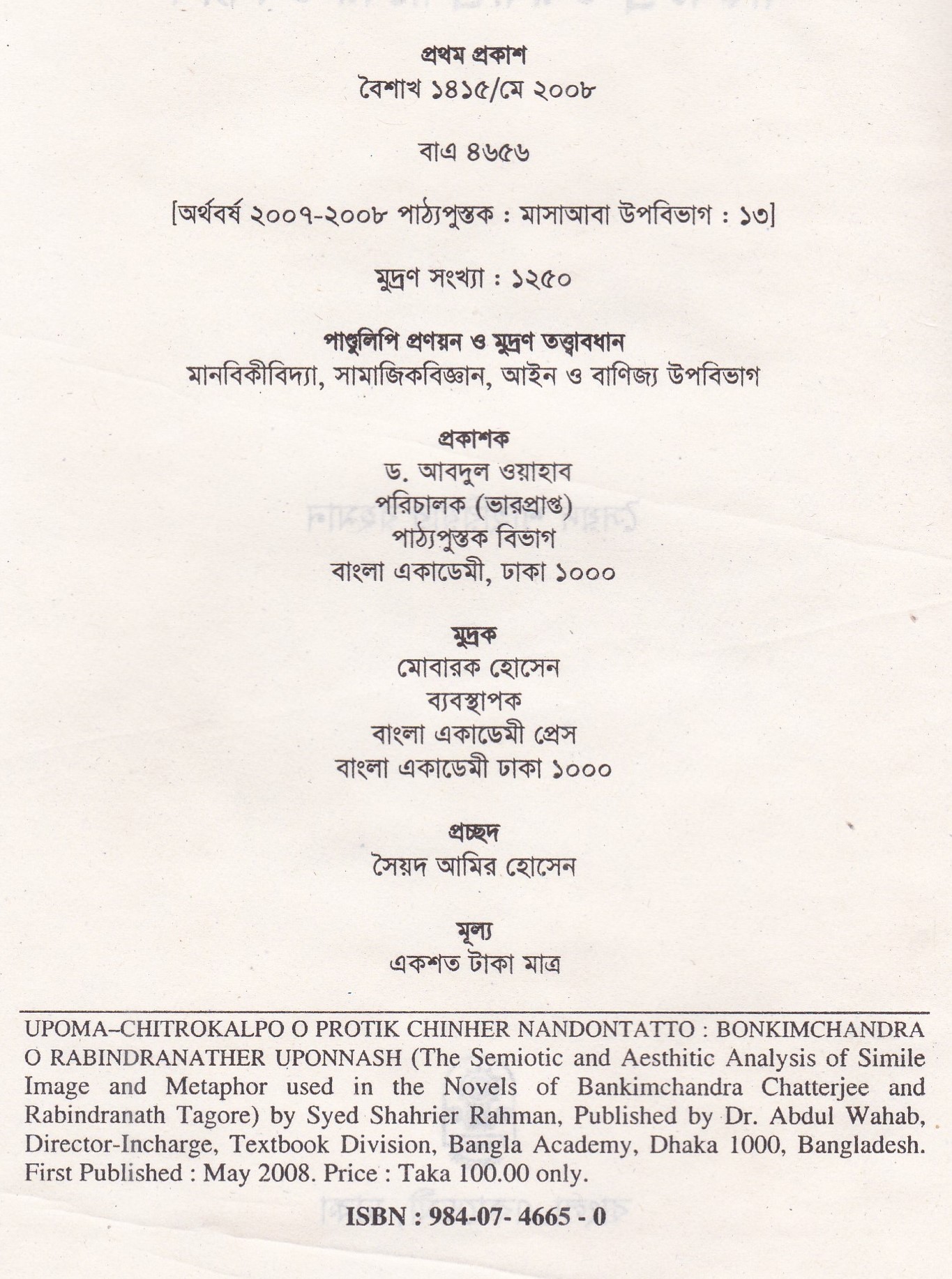 | ১ম প্রকাশ | মে ২০০৮ |