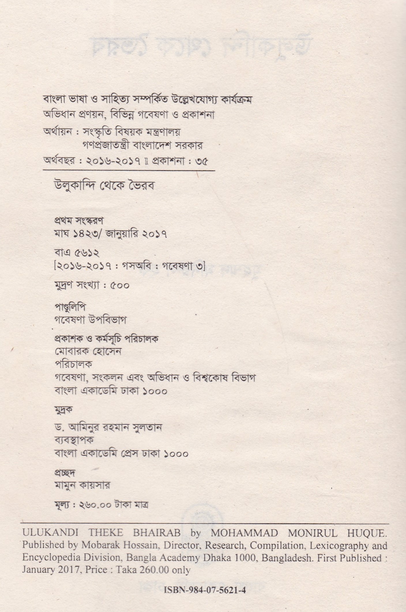 | ১ম প্রকাশ | জানুয়ারি ২০১৭ |