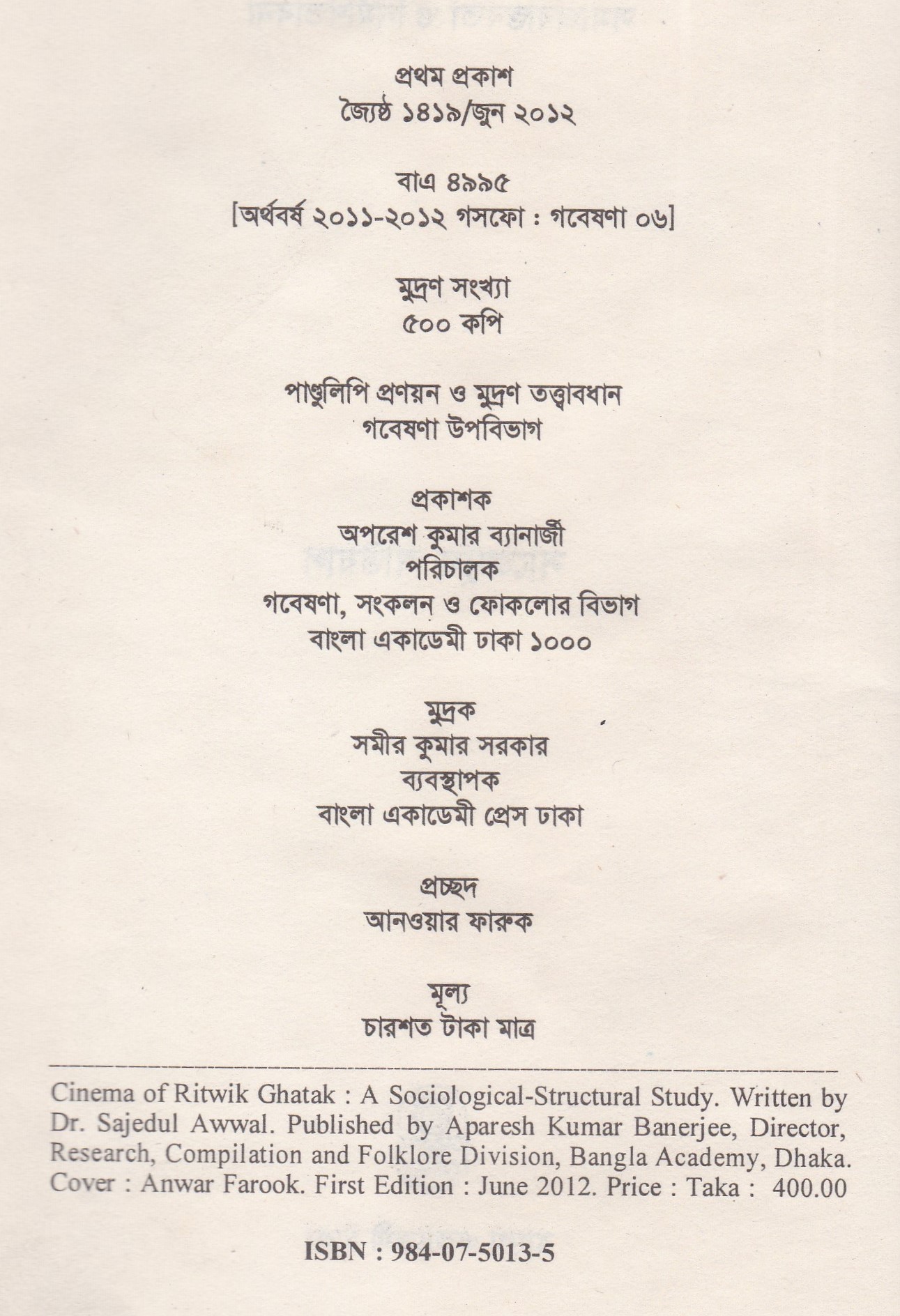 | প্রকাশক | বাংলা একাডেমি |