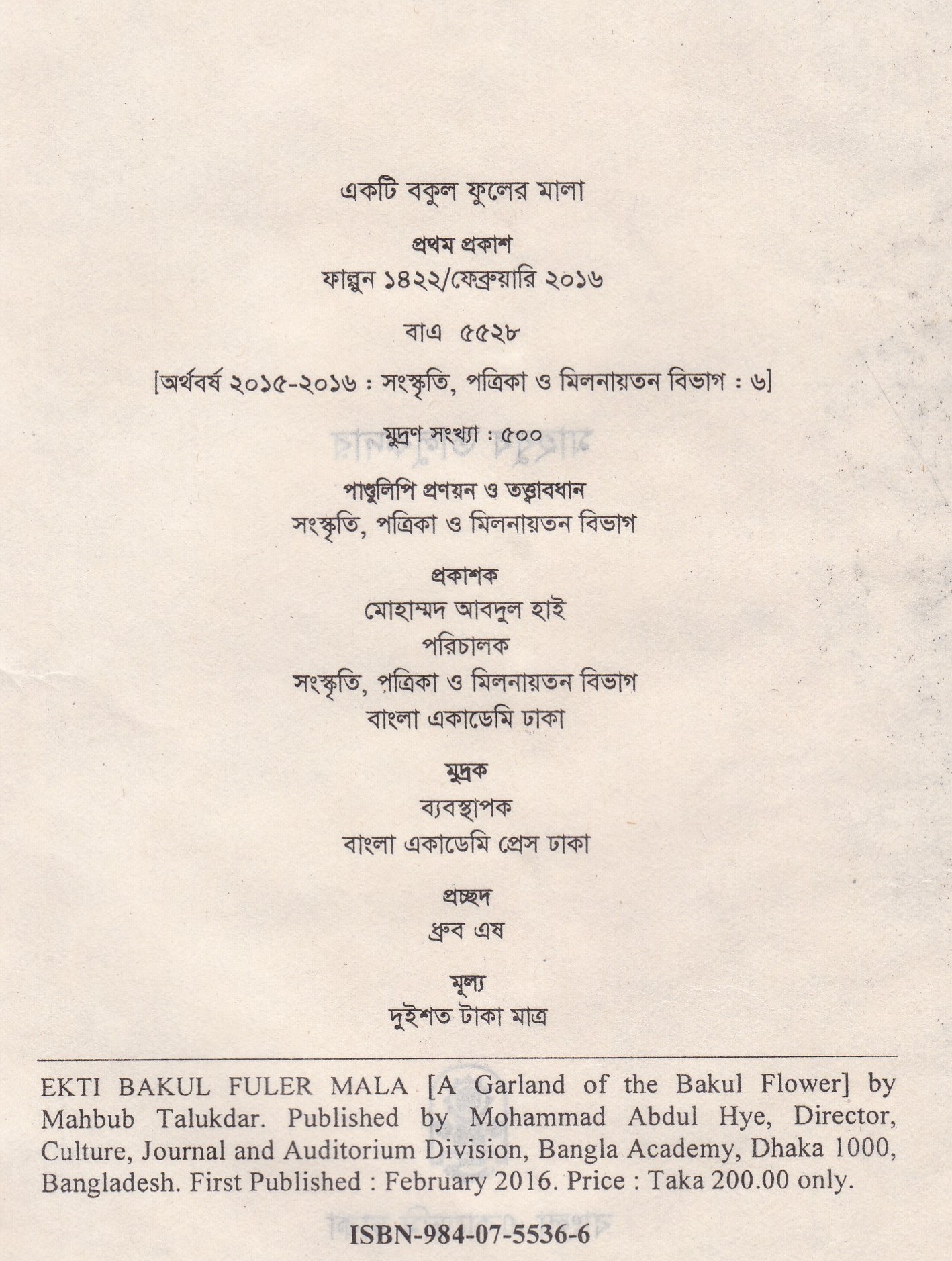 | ১ম প্রকাশ | ফেব্রুয়ারি ২০১৬ |