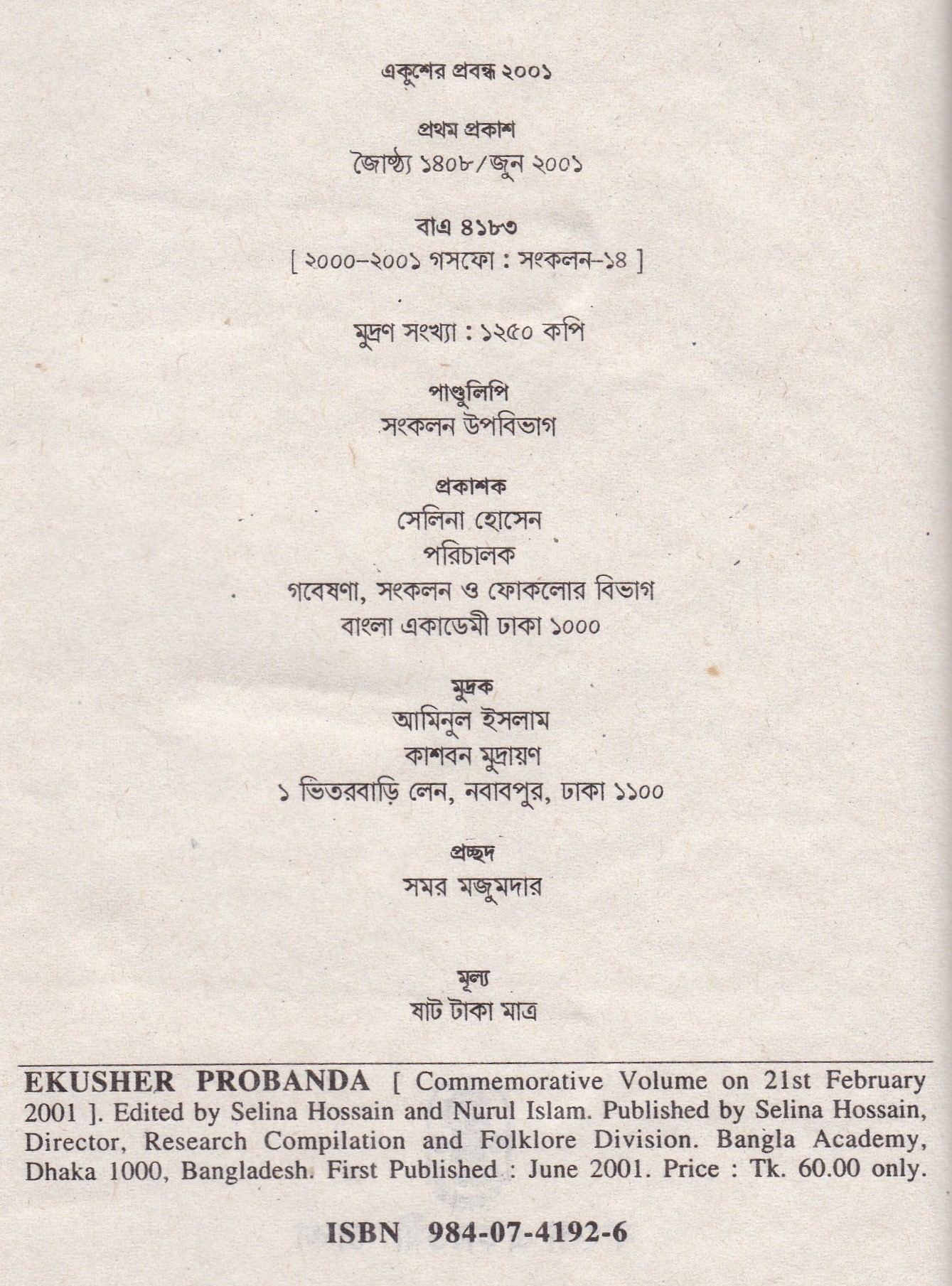 | ১ম প্রকাশ | জুন ২০০১ |