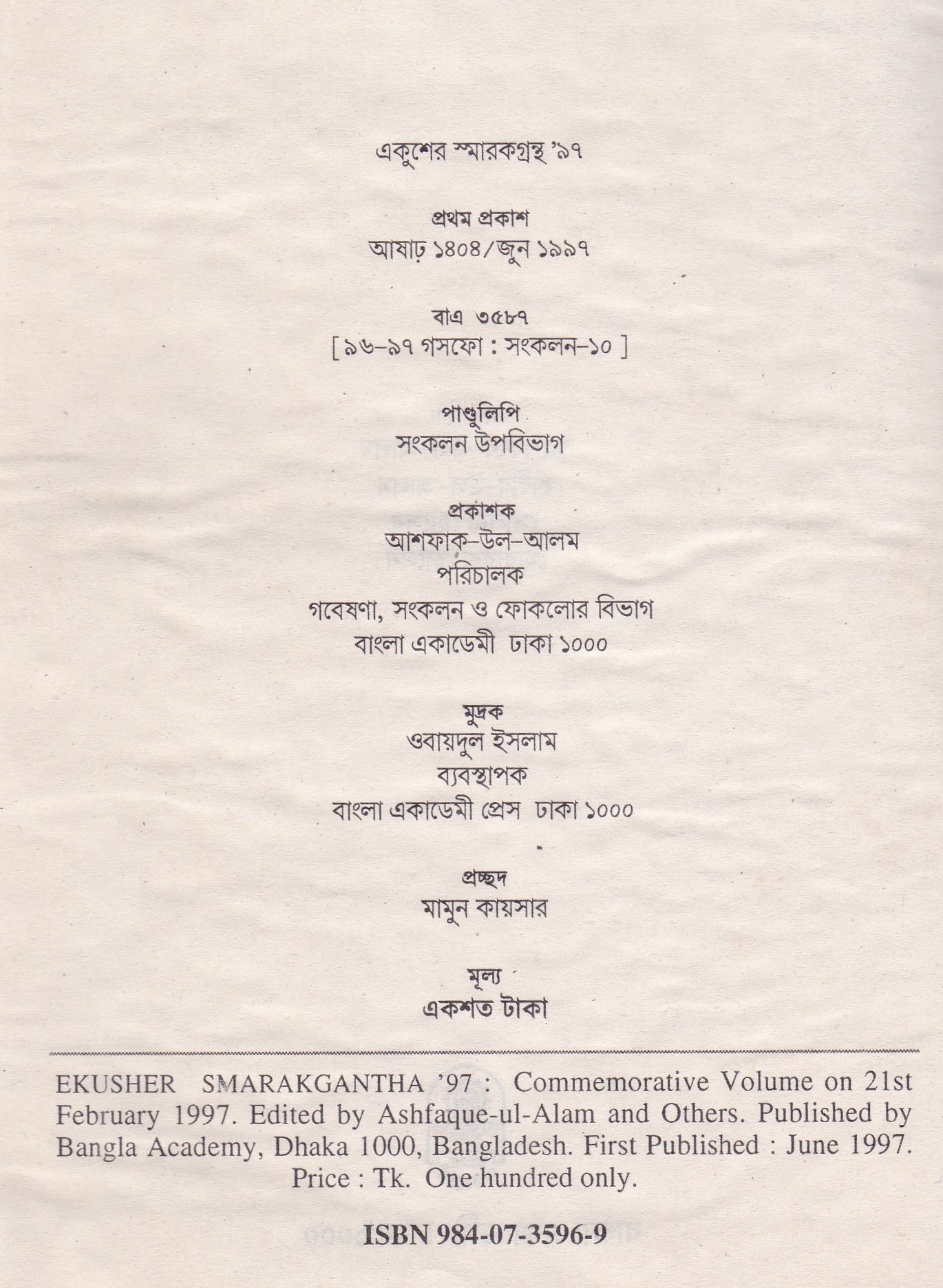 | ১ম প্রকাশ | জুন ১৯৯৭ |