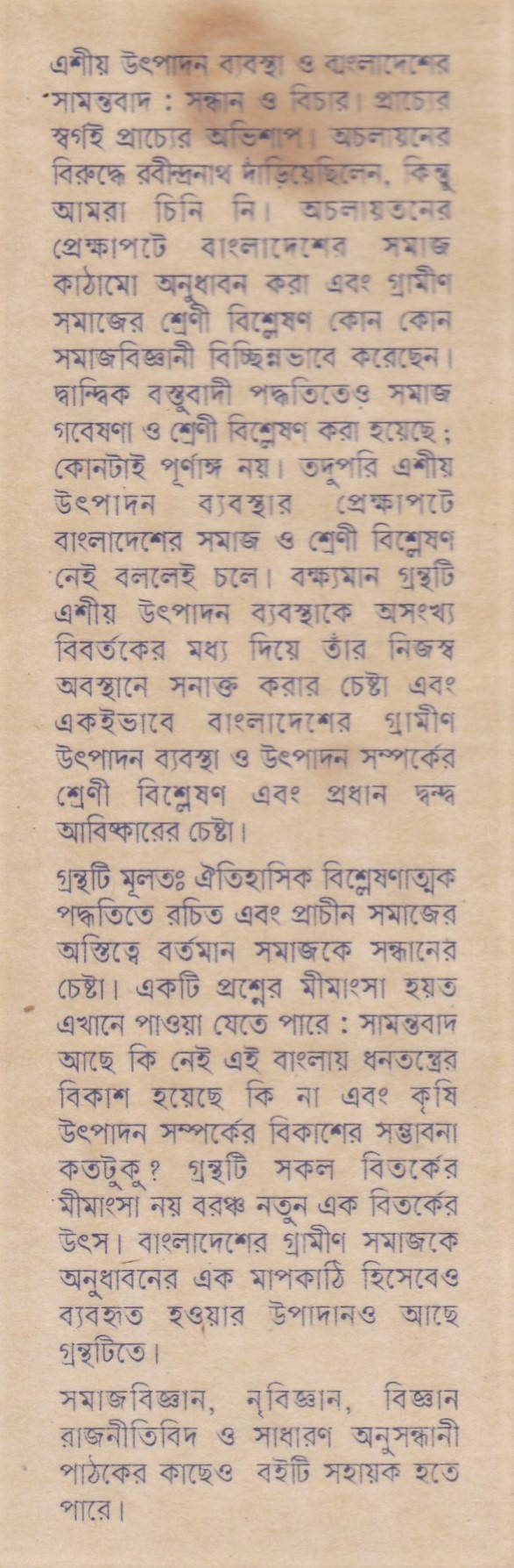 এশীয় উৎপাদন ব্যবস্থা ও বাংলাদেশের সামন্তবাদ সন্ধান ও বিচার