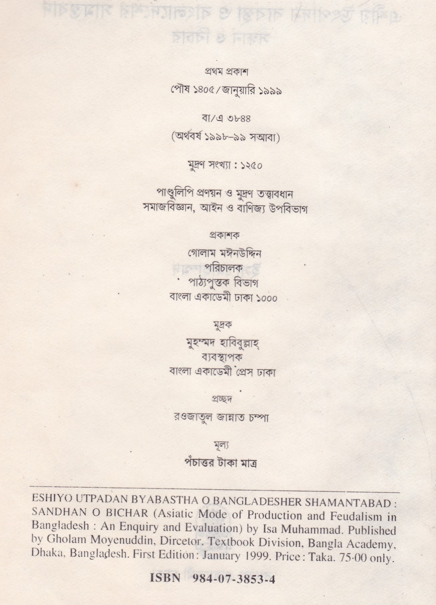 | ১ম প্রকাশ | জানুয়ারি ১৯৯৯ |