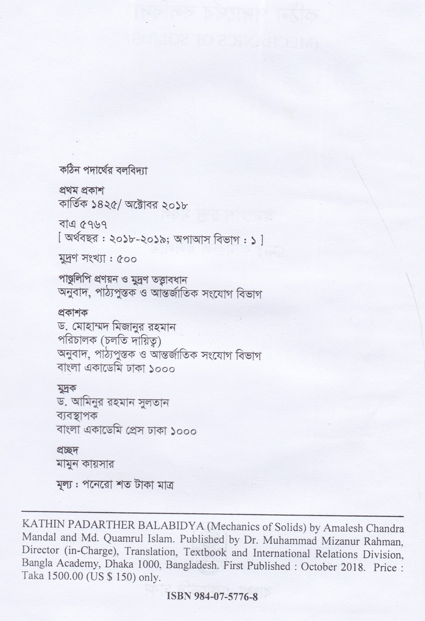 | ১ম প্রকাশ | অক্টোবর ২০১৮ |