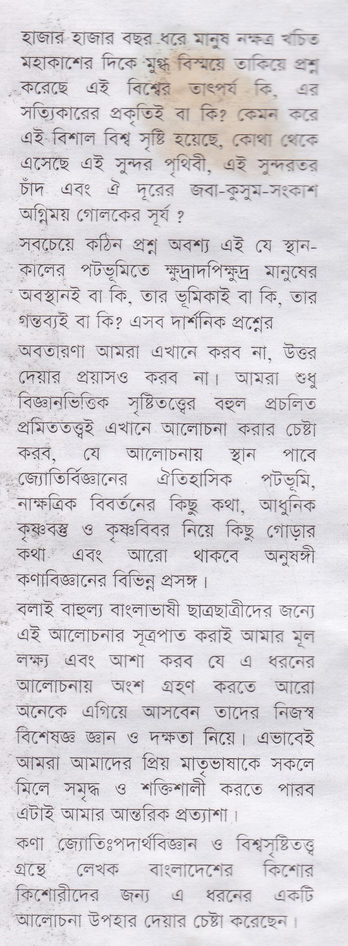 কণাজ্যোতি : পদার্থবিজ্ঞান ও বিশ্বসৃষ্টিতত্ত্ব