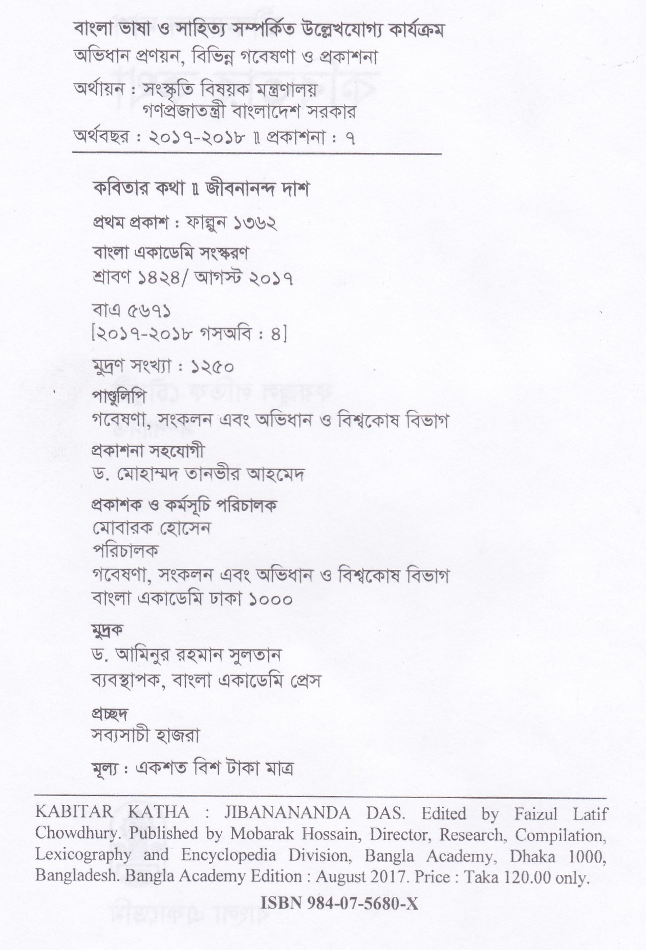 | প্রকাশক | বাংলা একাডেমি |