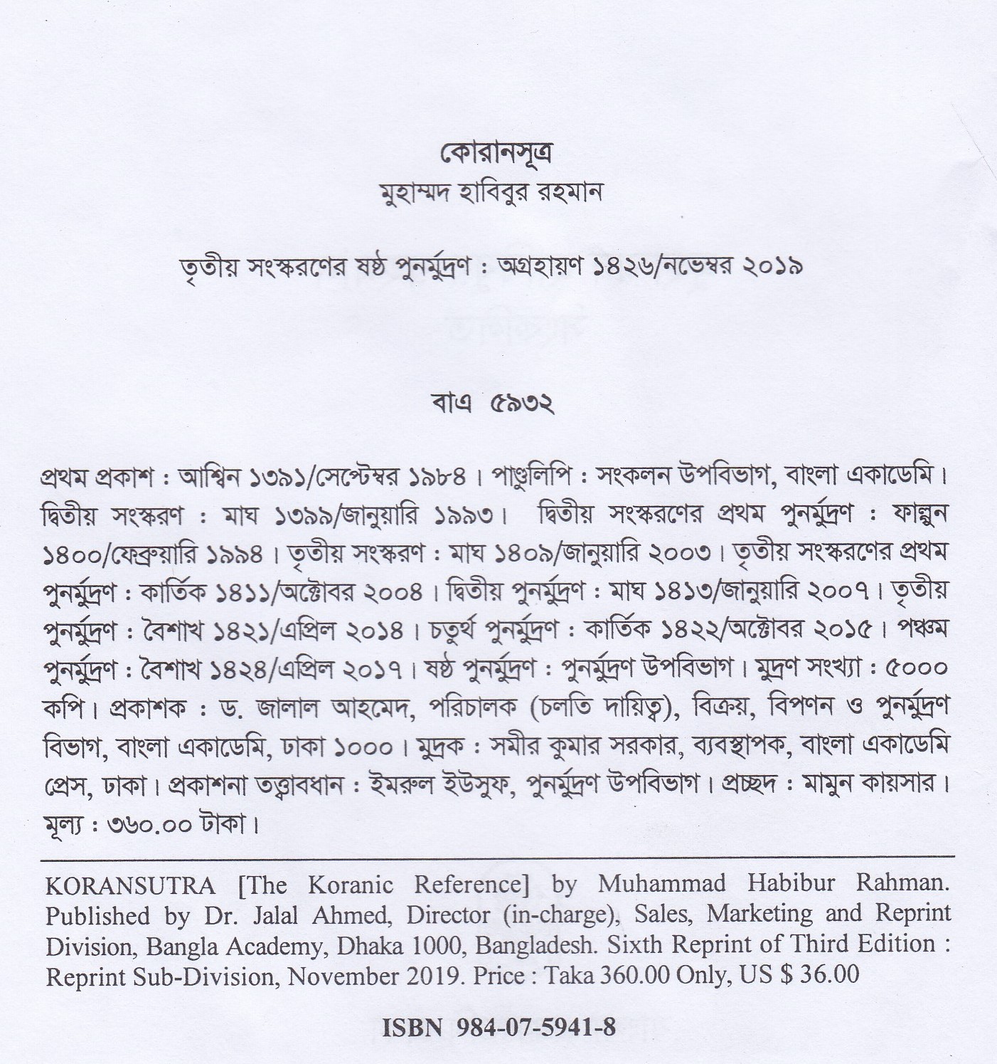 | পুন মুদ্রণ: | ৬ষ্ঠ পুনর্মুদ্রণ : নভেম্বর ২০১৯ |