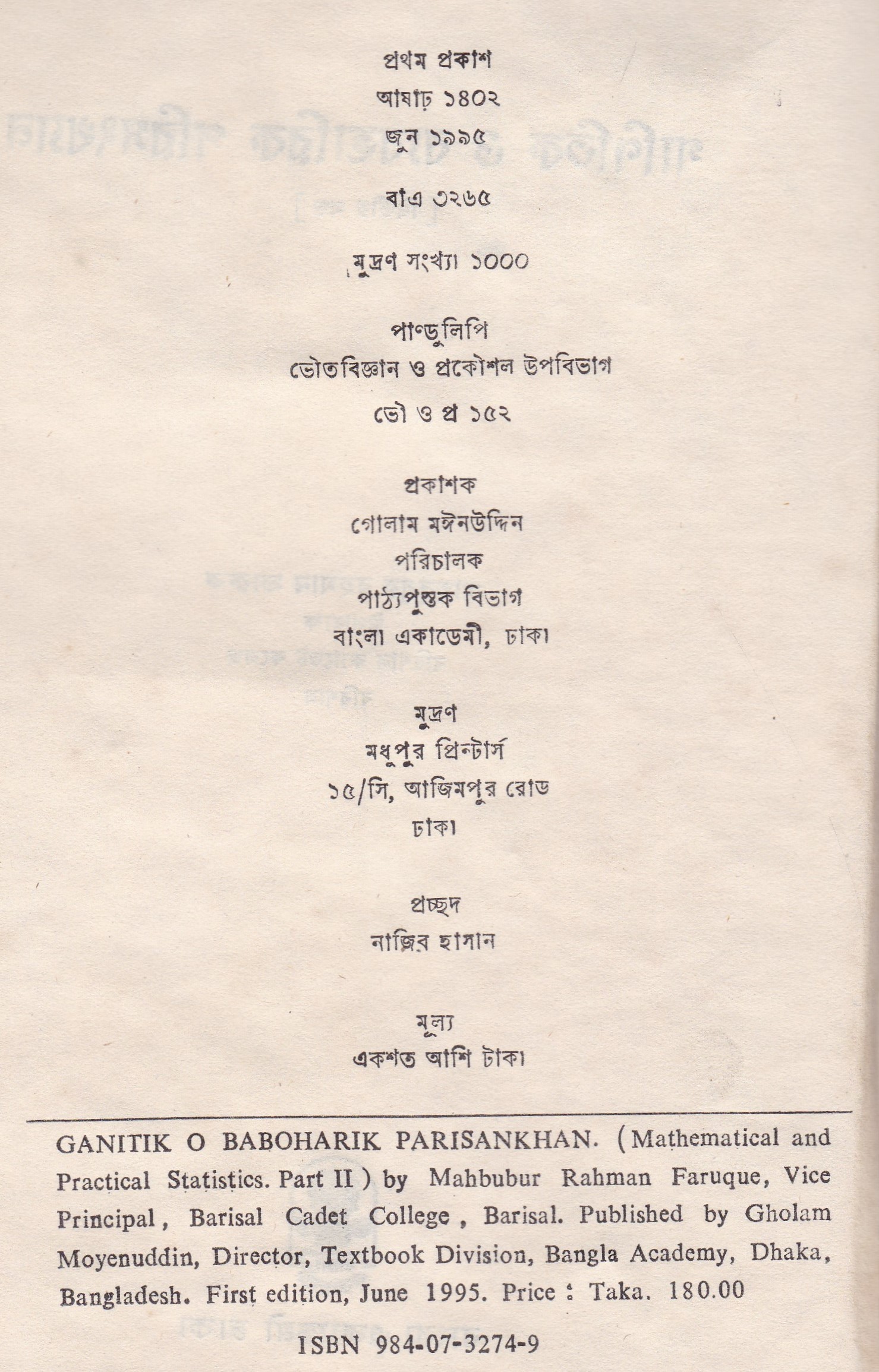 গাণিতিক ও ব্যবহারিক পরিসংখ্যান (২য় খণ্ড)