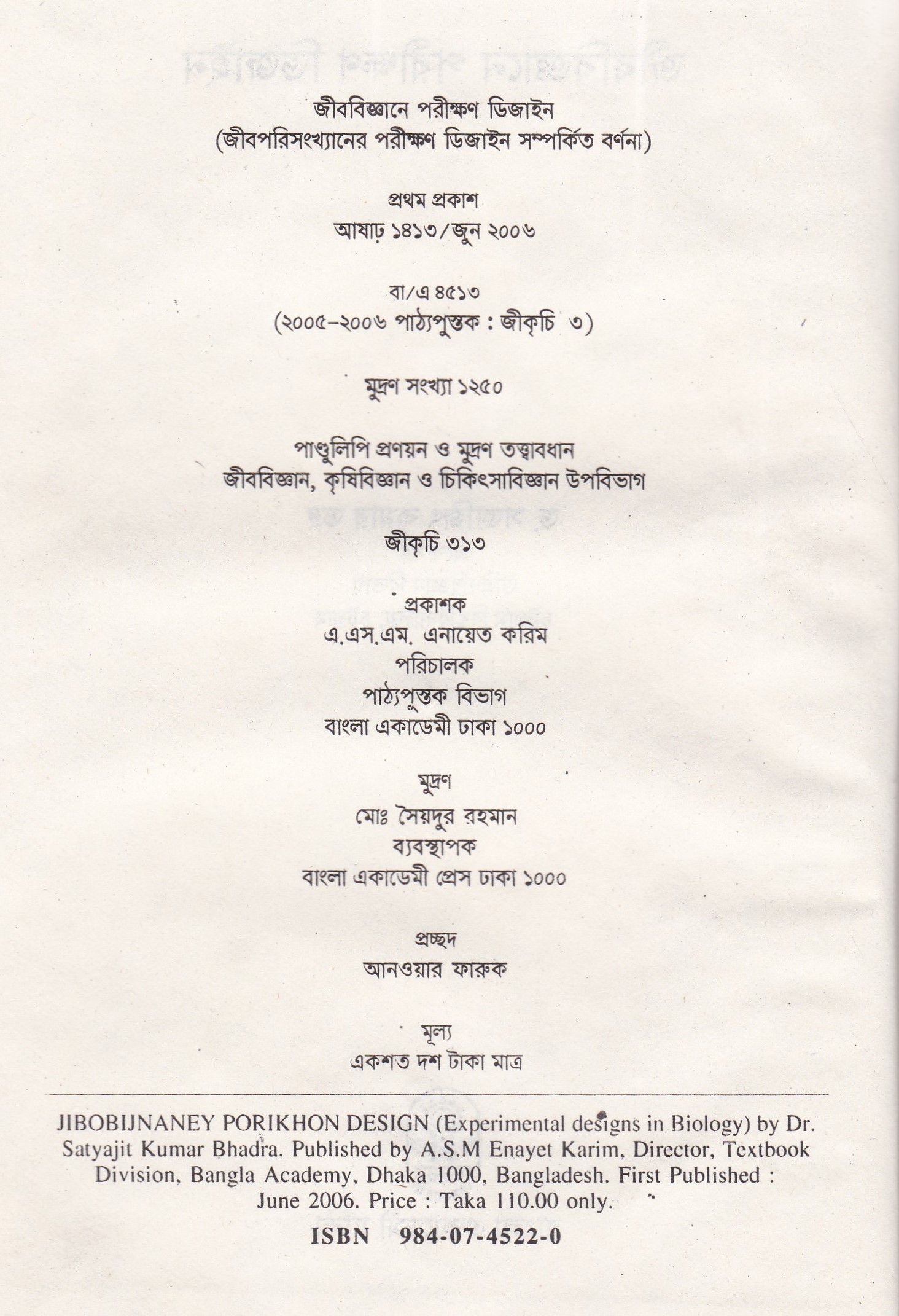 | ১ম প্রকাশ | জুন ২০০৬ |