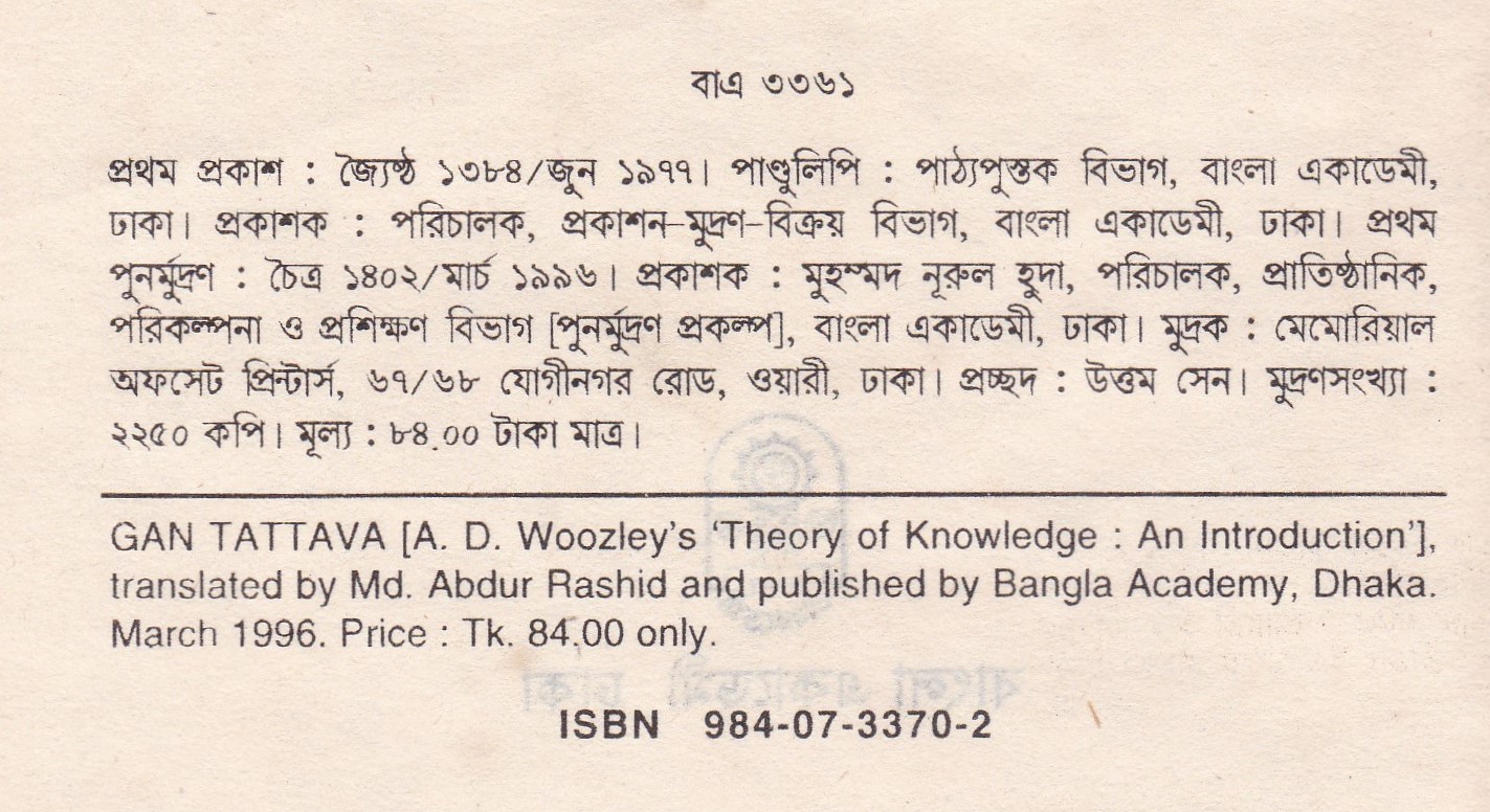 | পুন মুদ্রণ: | ১ম পুনর্মুদ্রণ : মার্চ ১৯৯৬ |