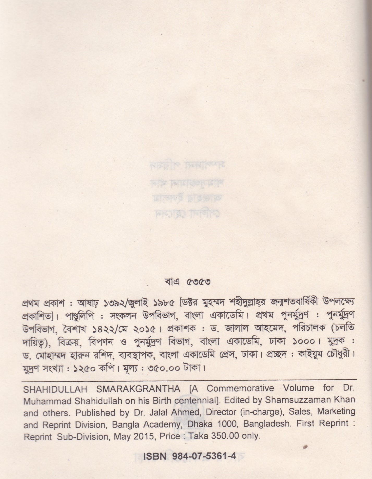 | পুন মুদ্রণ: | ১ম পুনর্মুদ্রণ : মে ২০১৫ |