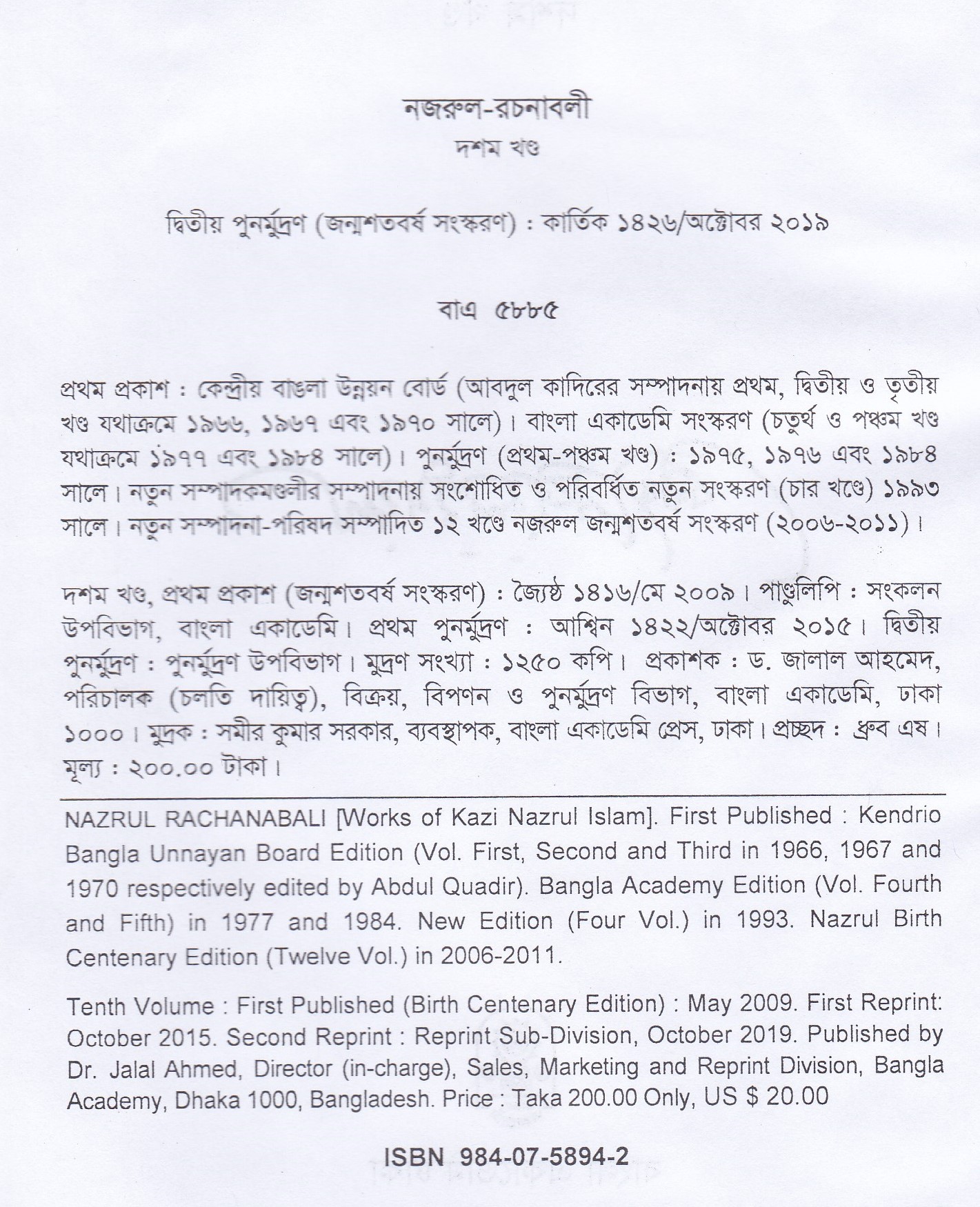 | পুন মুদ্রণ: | ২য় পুনর্মুদ্রণ : অক্টোবর ২০১৯ |