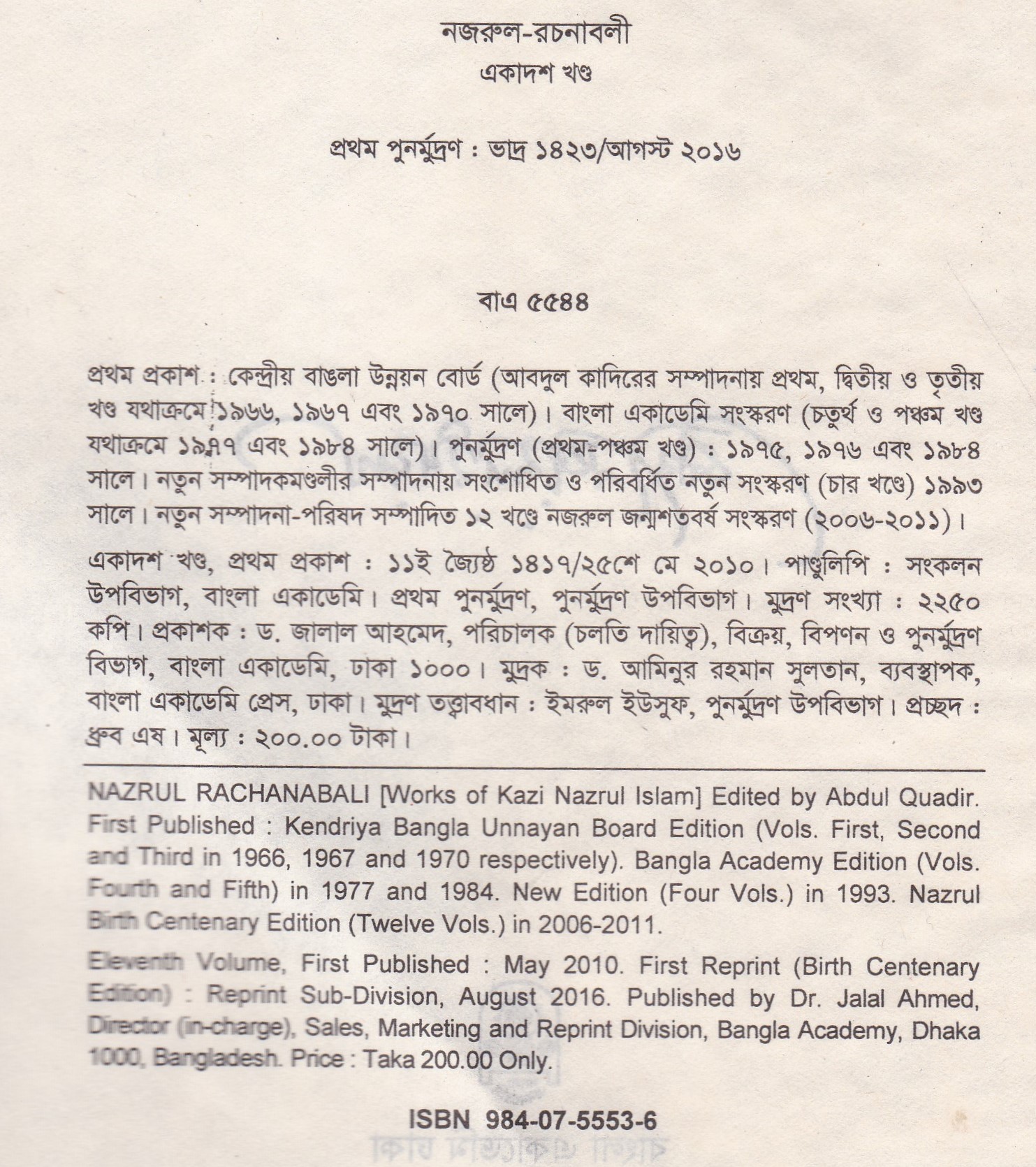 | পুন মুদ্রণ: | ১ম পুনর্মুদ্রণ : আগস্ট ২০১৬ |