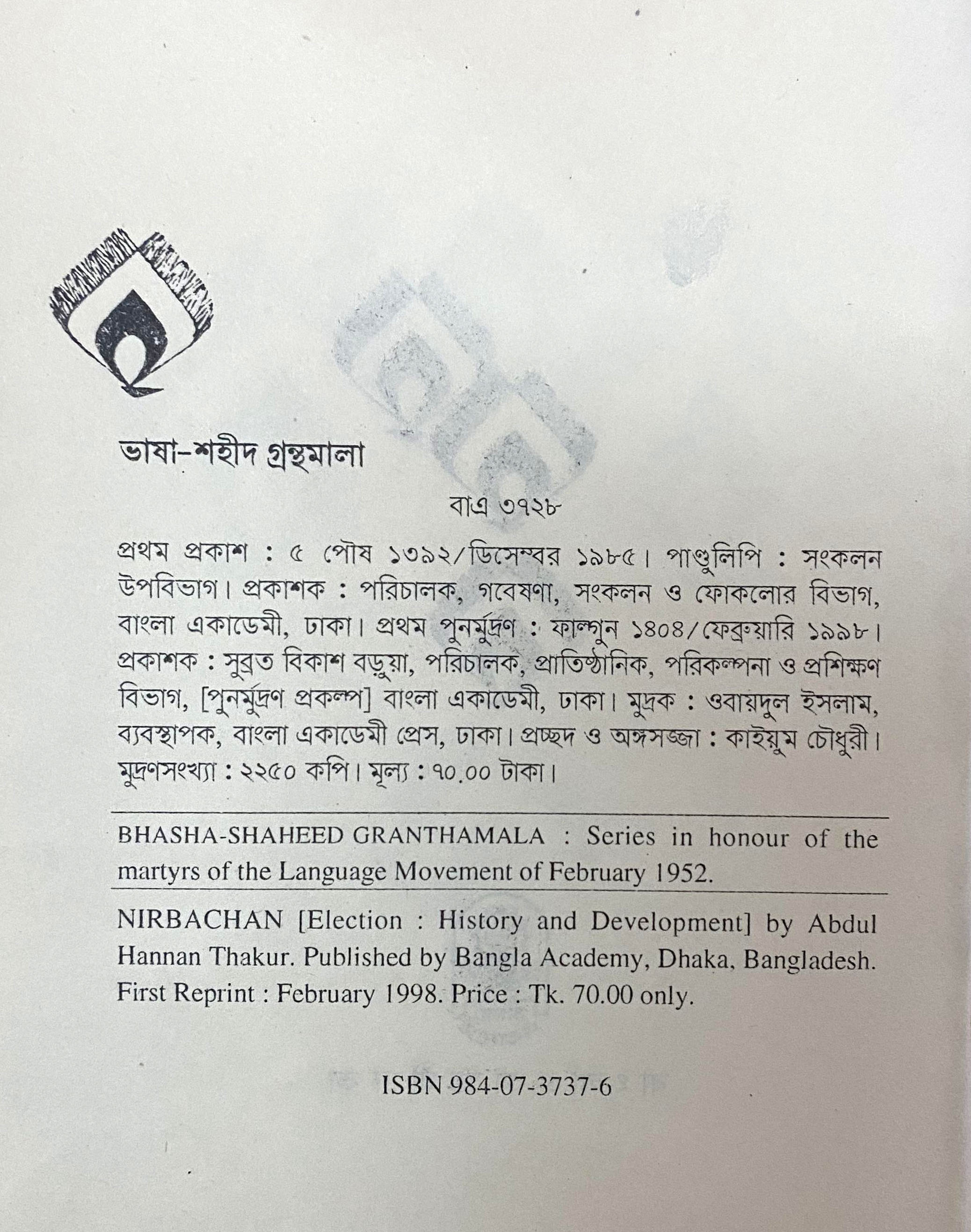 | পুন মুদ্রণ: | ১ম পুনর্মুদ্রণ : ফেব্রুয়ারি ১৯৯৮ |