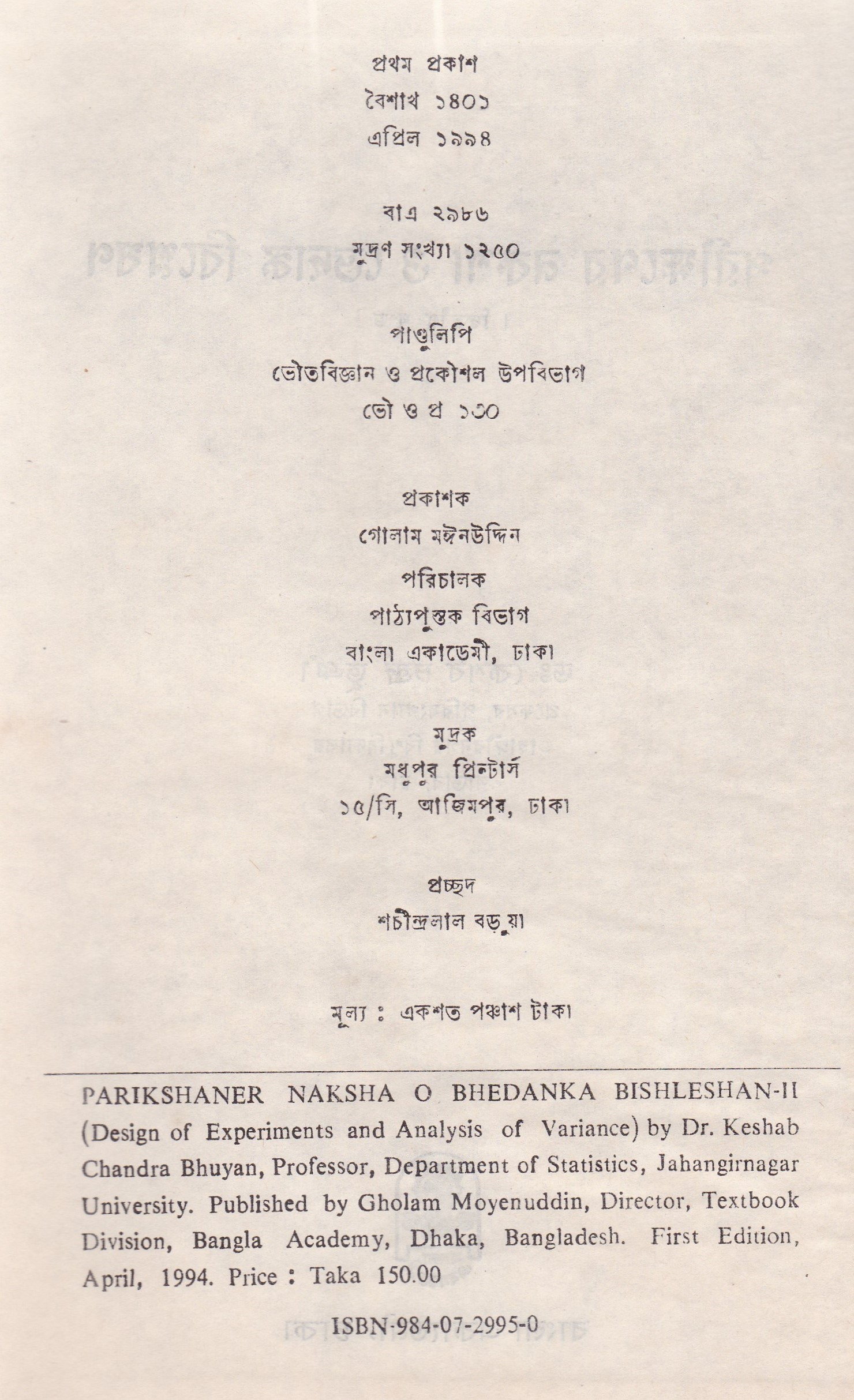 | ১ম প্রকাশ | এপ্রিল ১৯৯৪ |