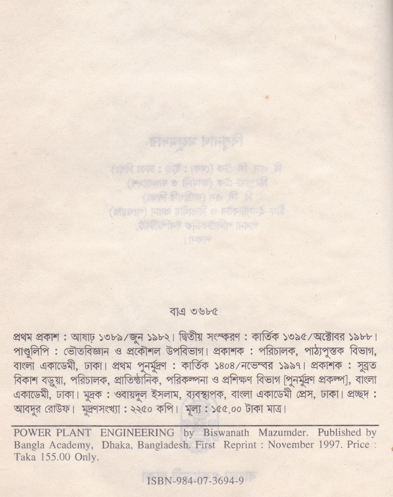 | পুন মুদ্রণ: | ১ম পুনর্মুদ্রণ : নভেম্বর ১৯৯৭ |