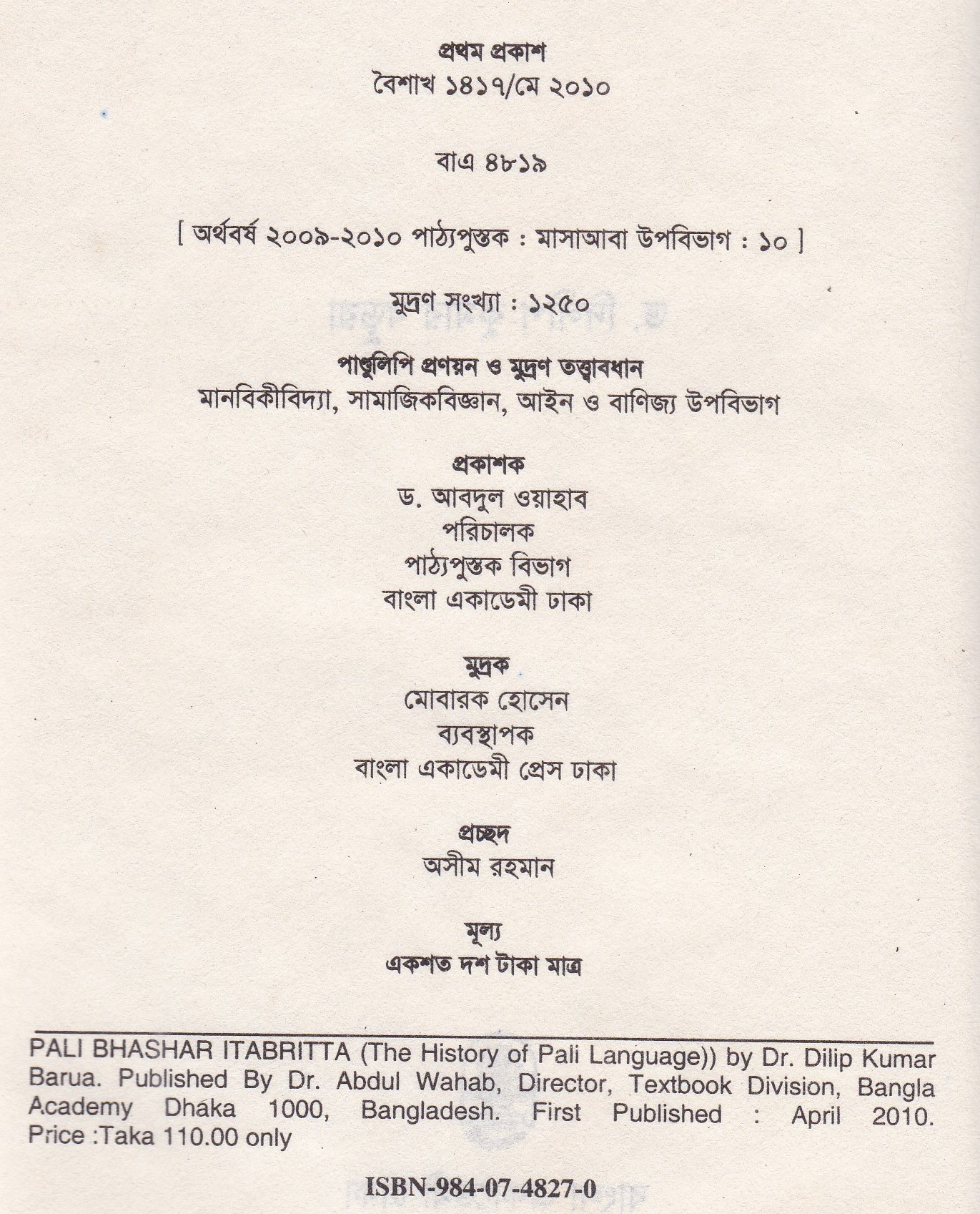 | ১ম প্রকাশ | মে ২০১০ |
