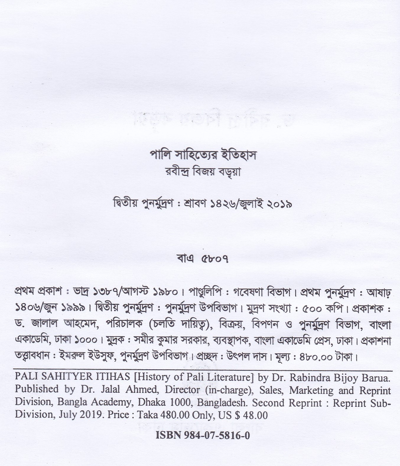 | পুন মুদ্রণ: | ২য় পুনর্মুদ্রণ : জুলাই ২০১৯ |