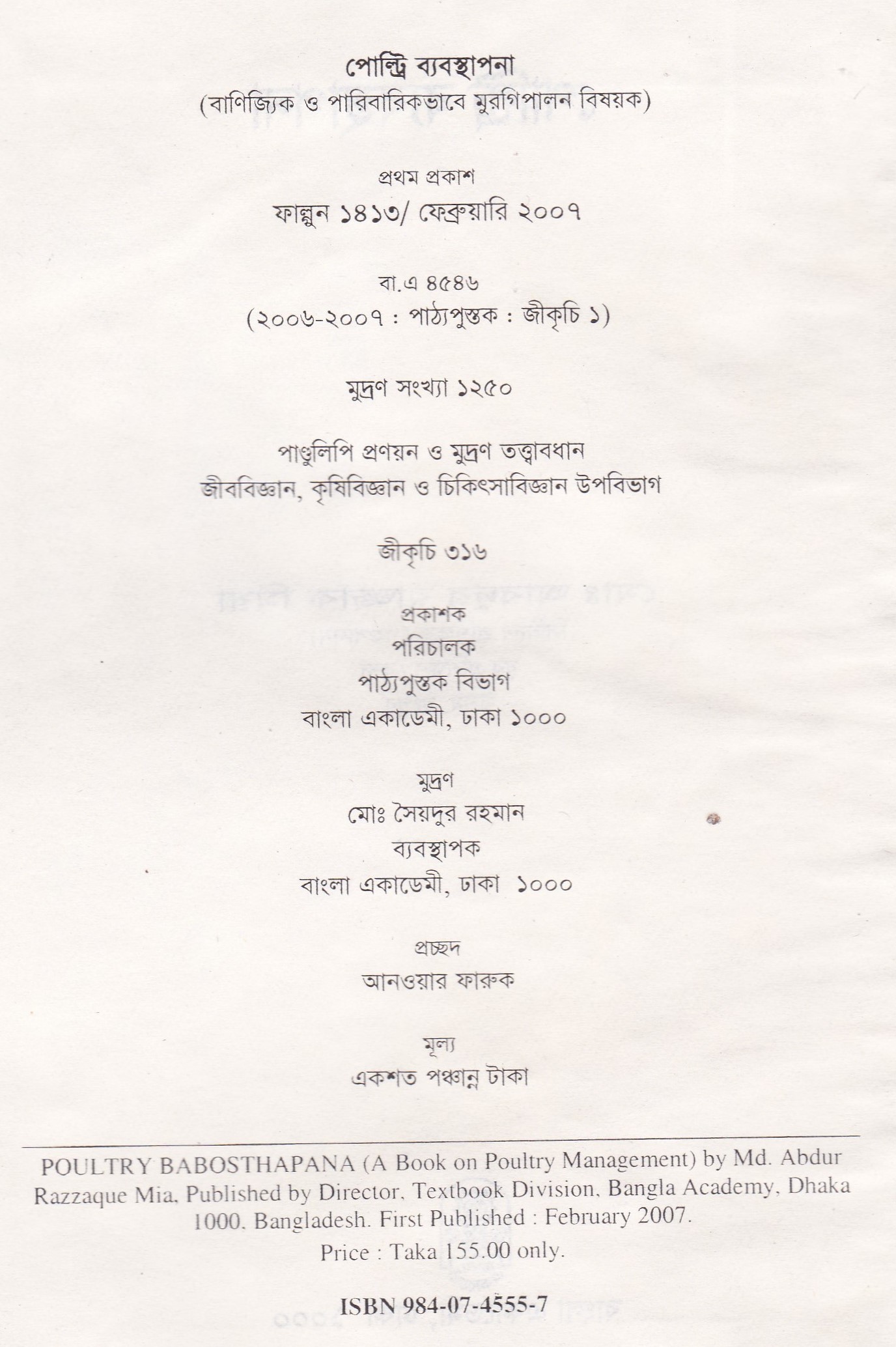 | ১ম প্রকাশ | ফেব্রুয়ারি ২০০৭ |