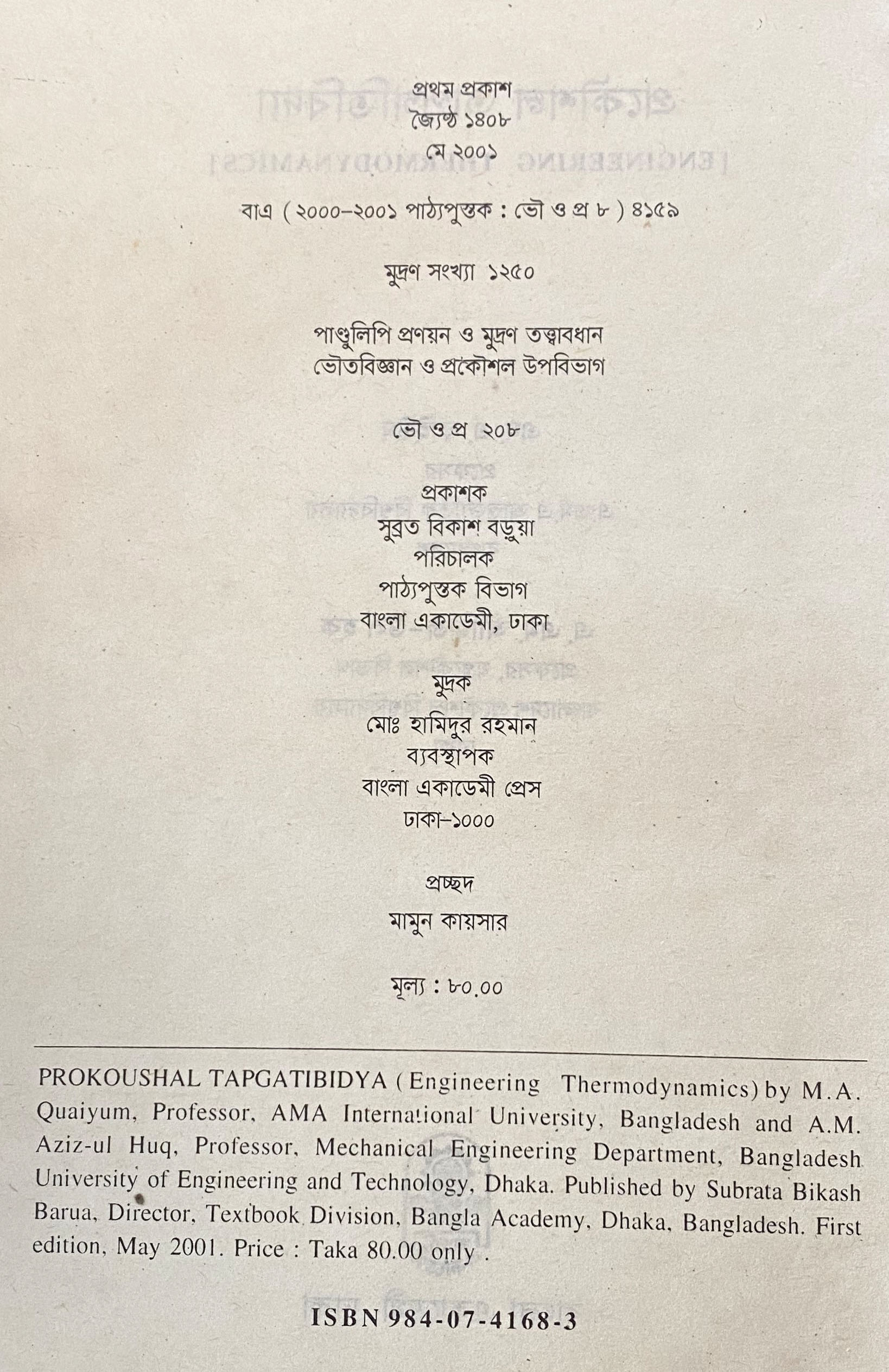 | ১ম প্রকাশ | মে ২০০১ |