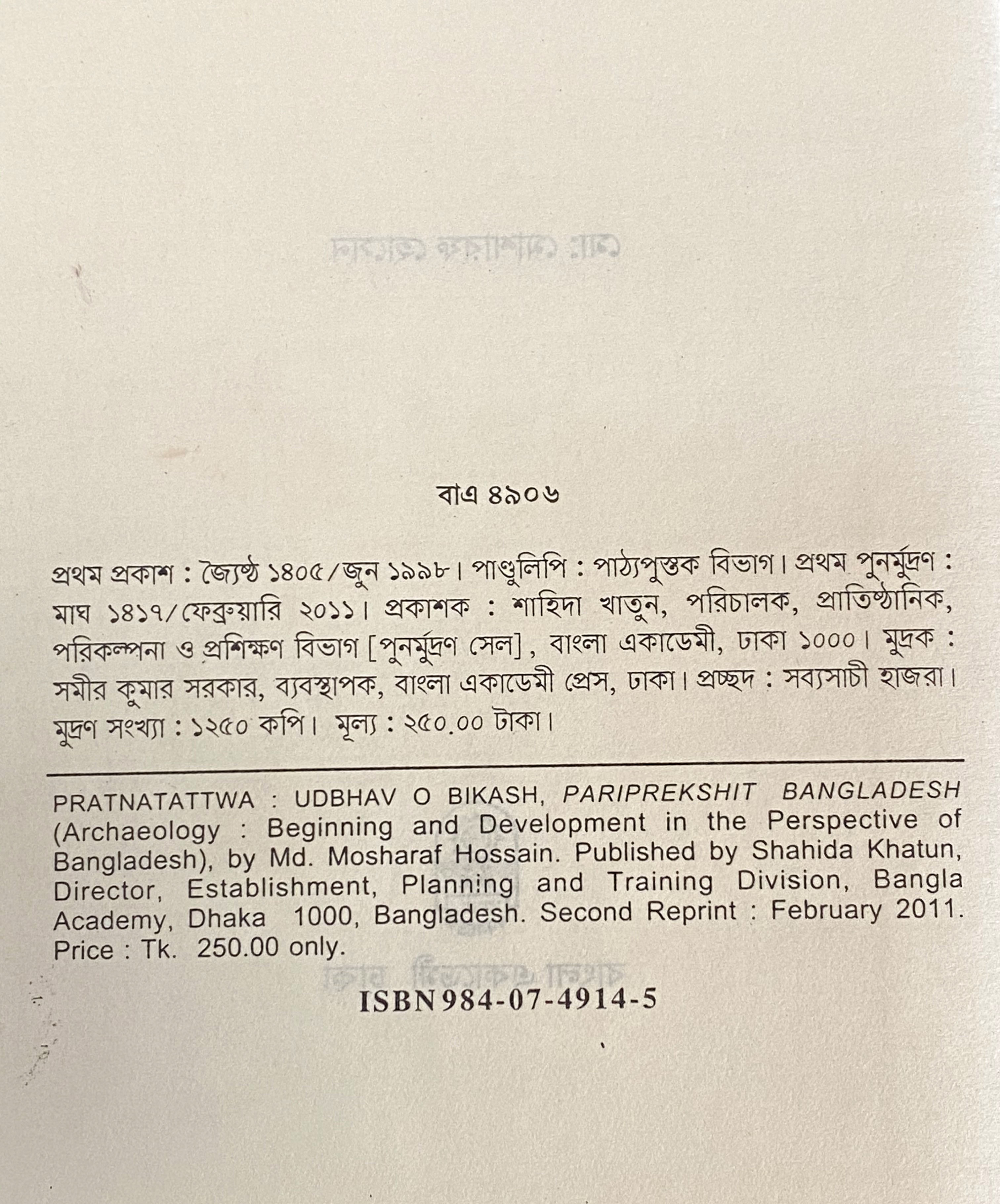 | পুন মুদ্রণ: | ১ম পুনর্মুদ্রণ : ফেব্রুয়ারি ২০১১ |