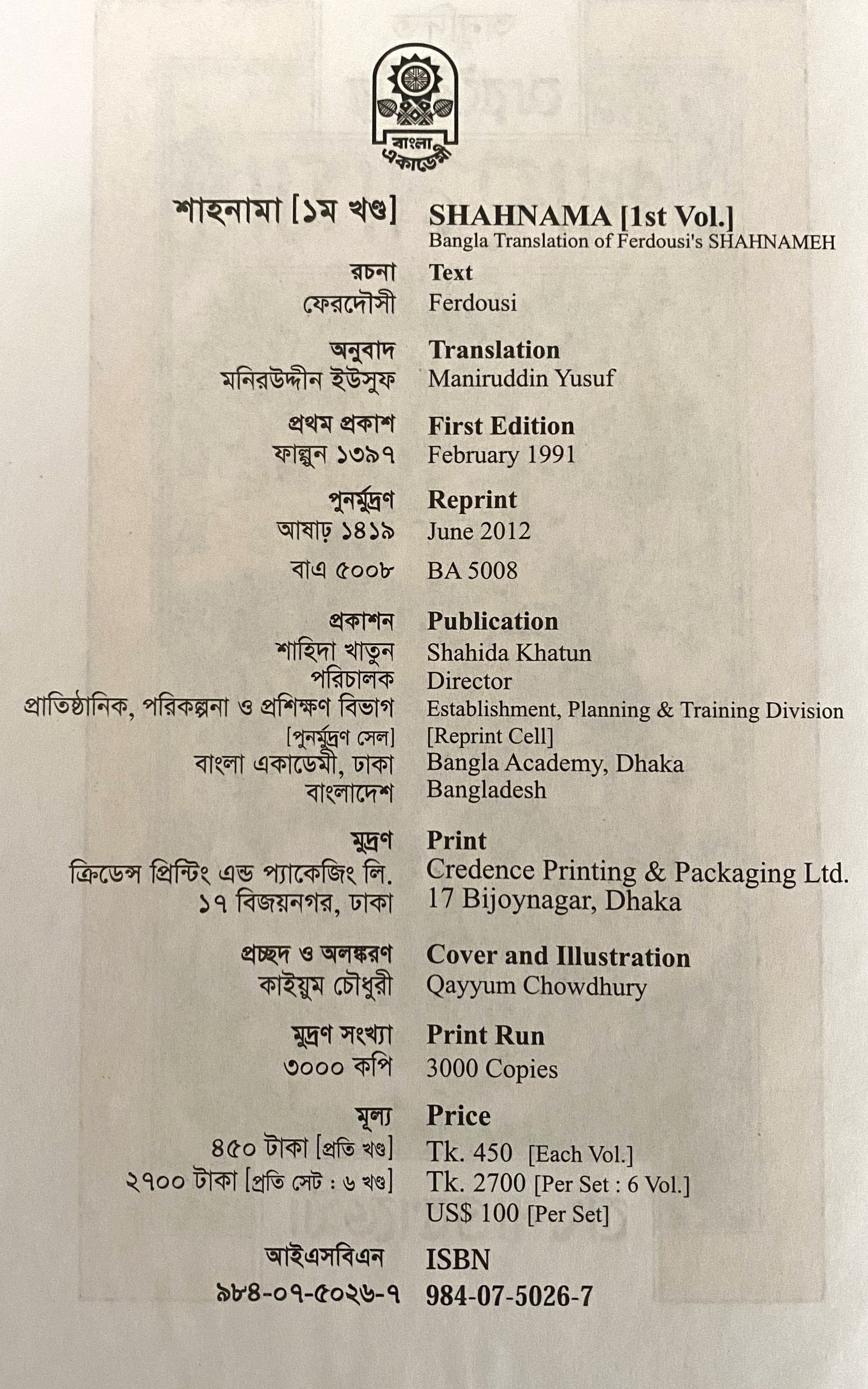| প্রকাশক | বাংলা একাডেমি |