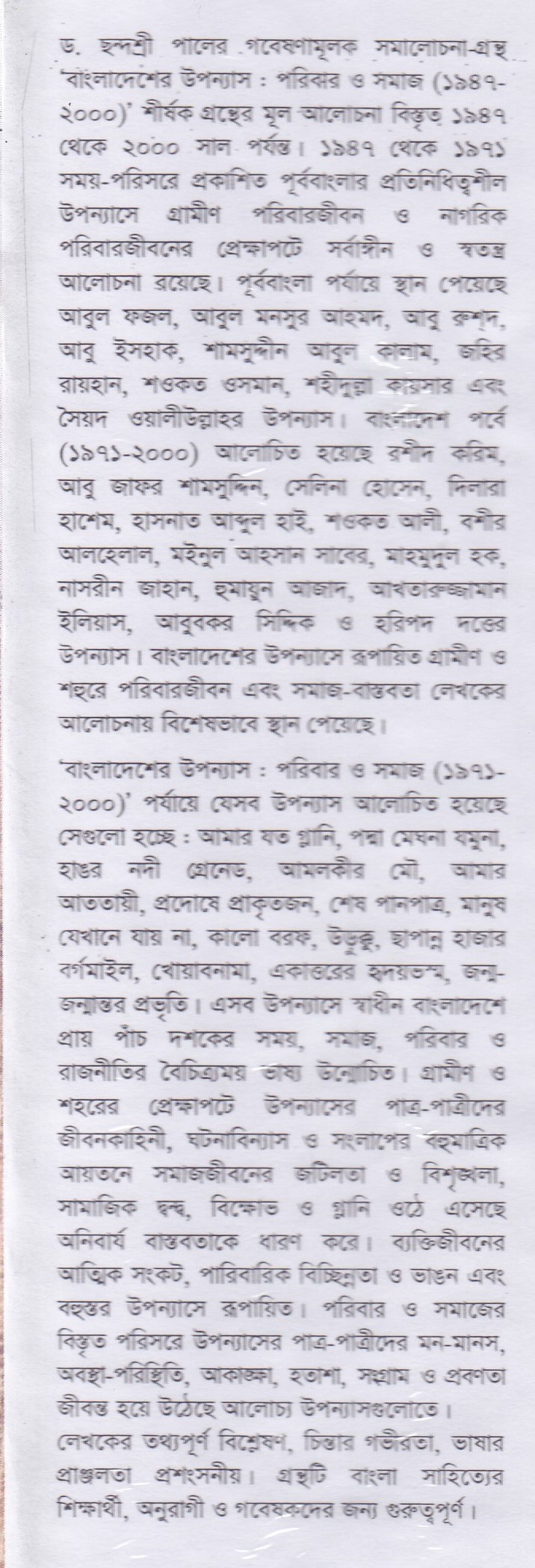 বাংলাদেশের উপন্যাস পরিবার ও সমাজ