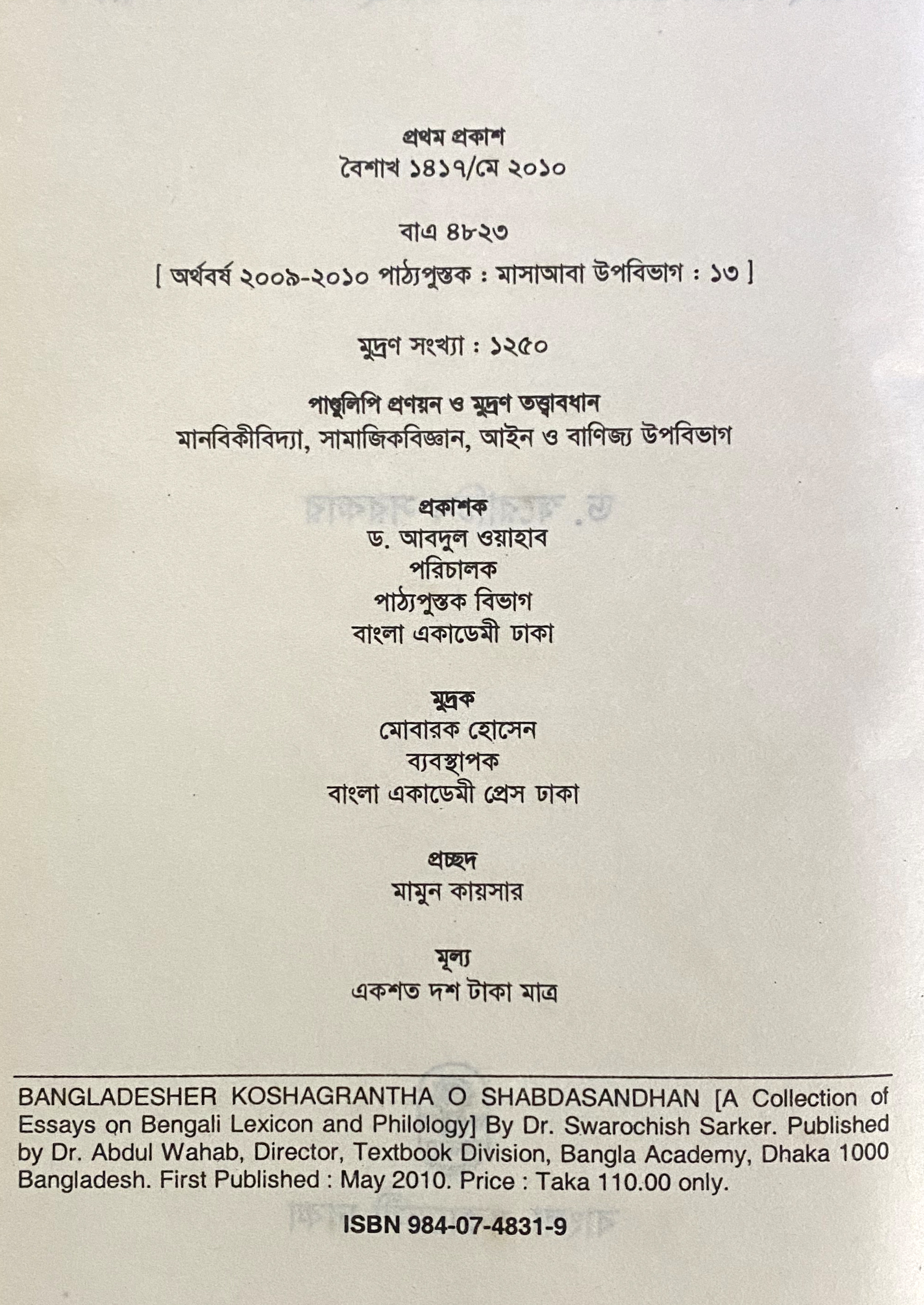 | ১ম প্রকাশ | মে ২০১০ |