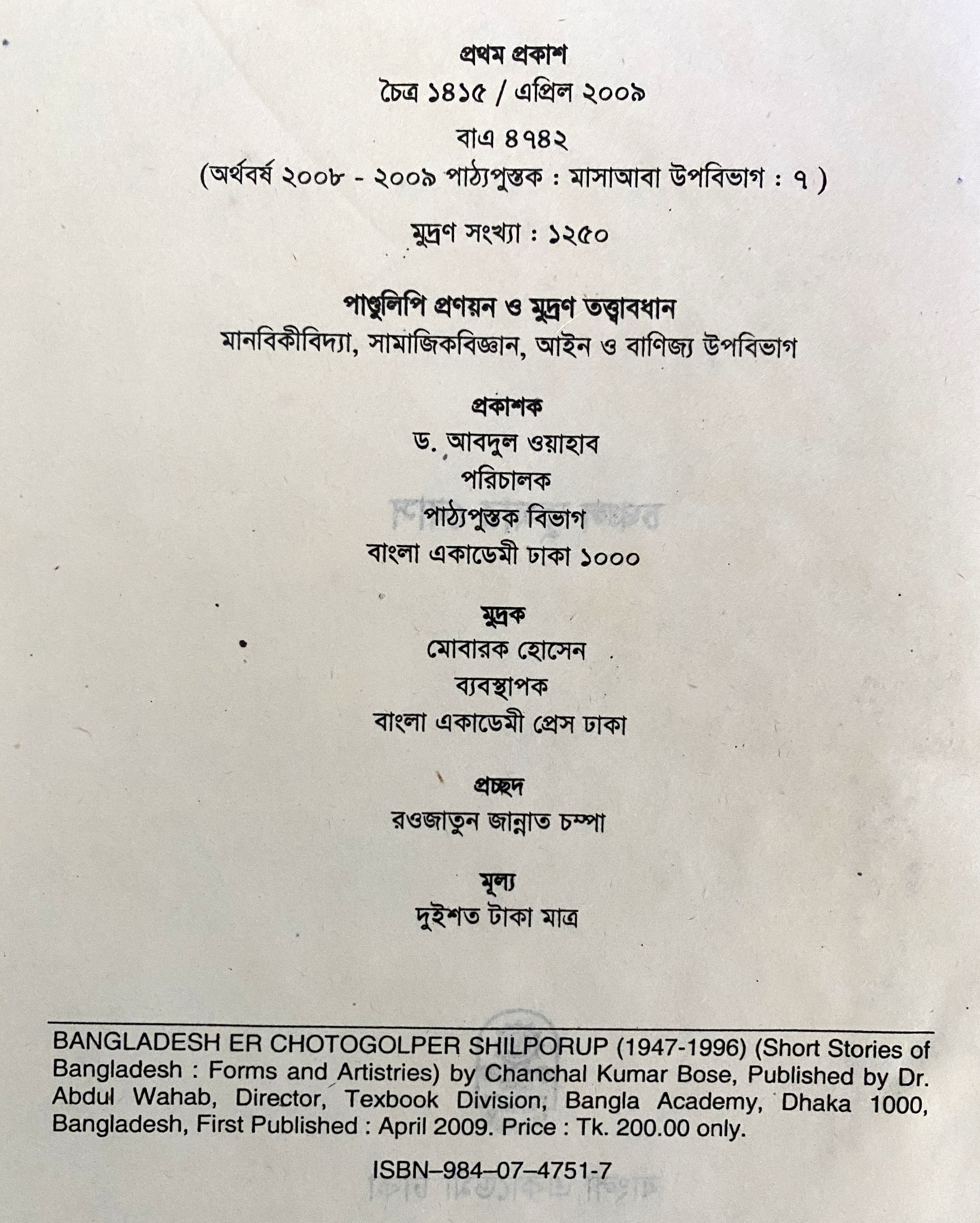 | ১ম প্রকাশ | এপ্রির ২০০৯ |
