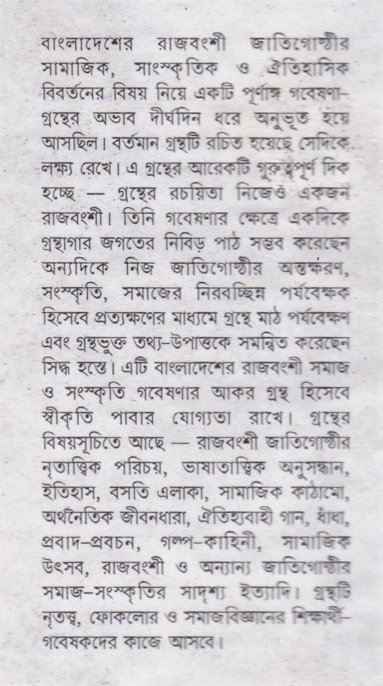 বাংলাদেশের রাজবংশী: সমাজ ও সংস্কৃতি