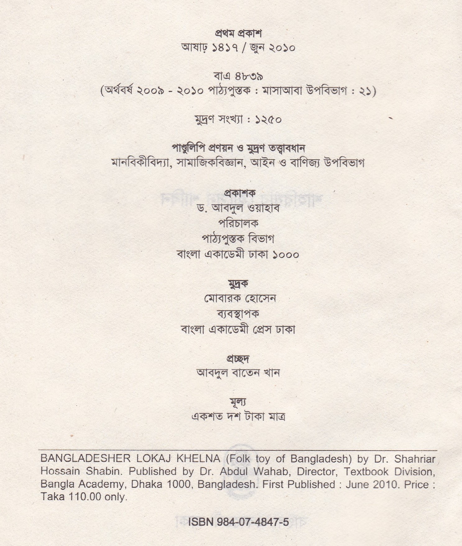 | প্রকাশক | বাংলা একাডেমি |