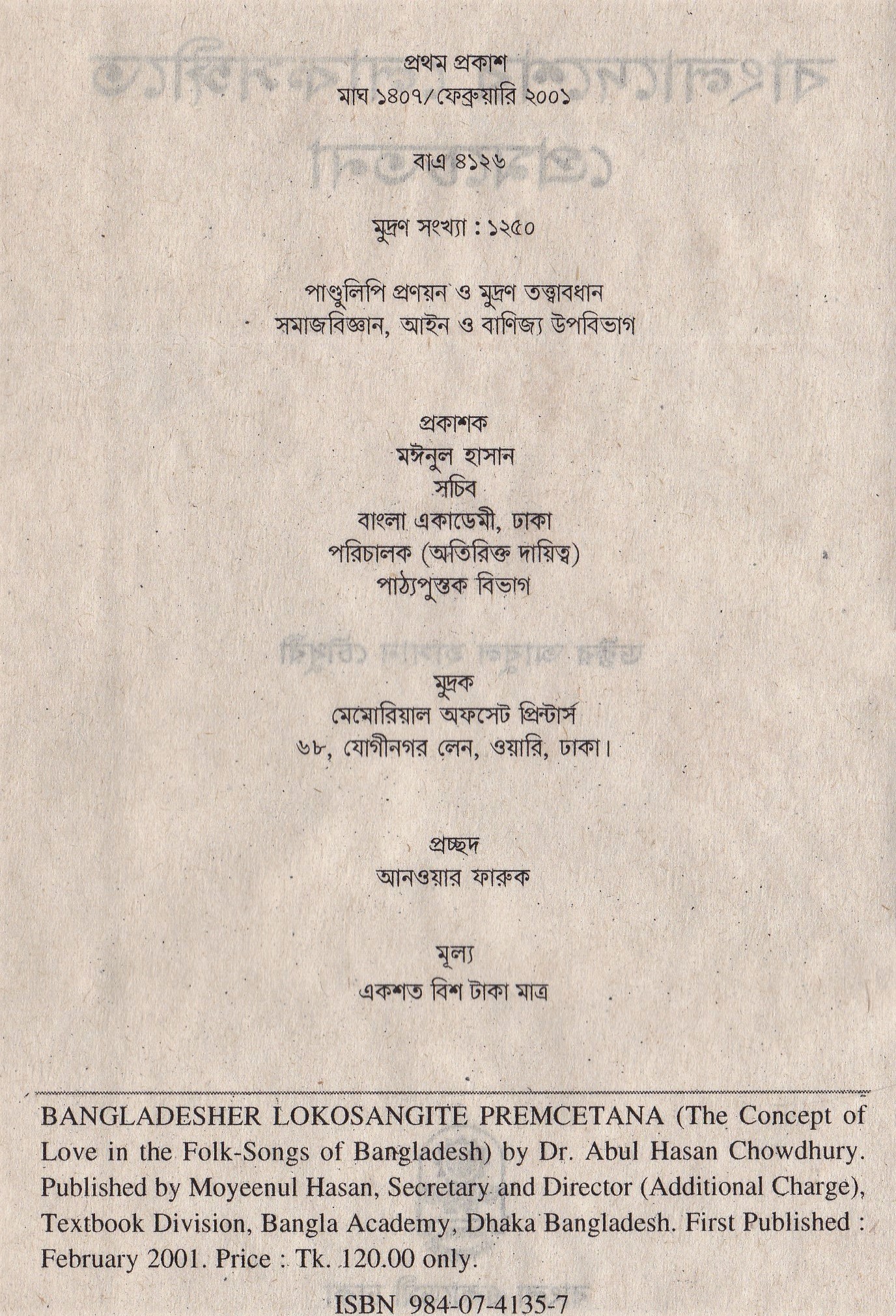 | ১ম প্রকাশ | ফেব্রুফারি ২০০১ |