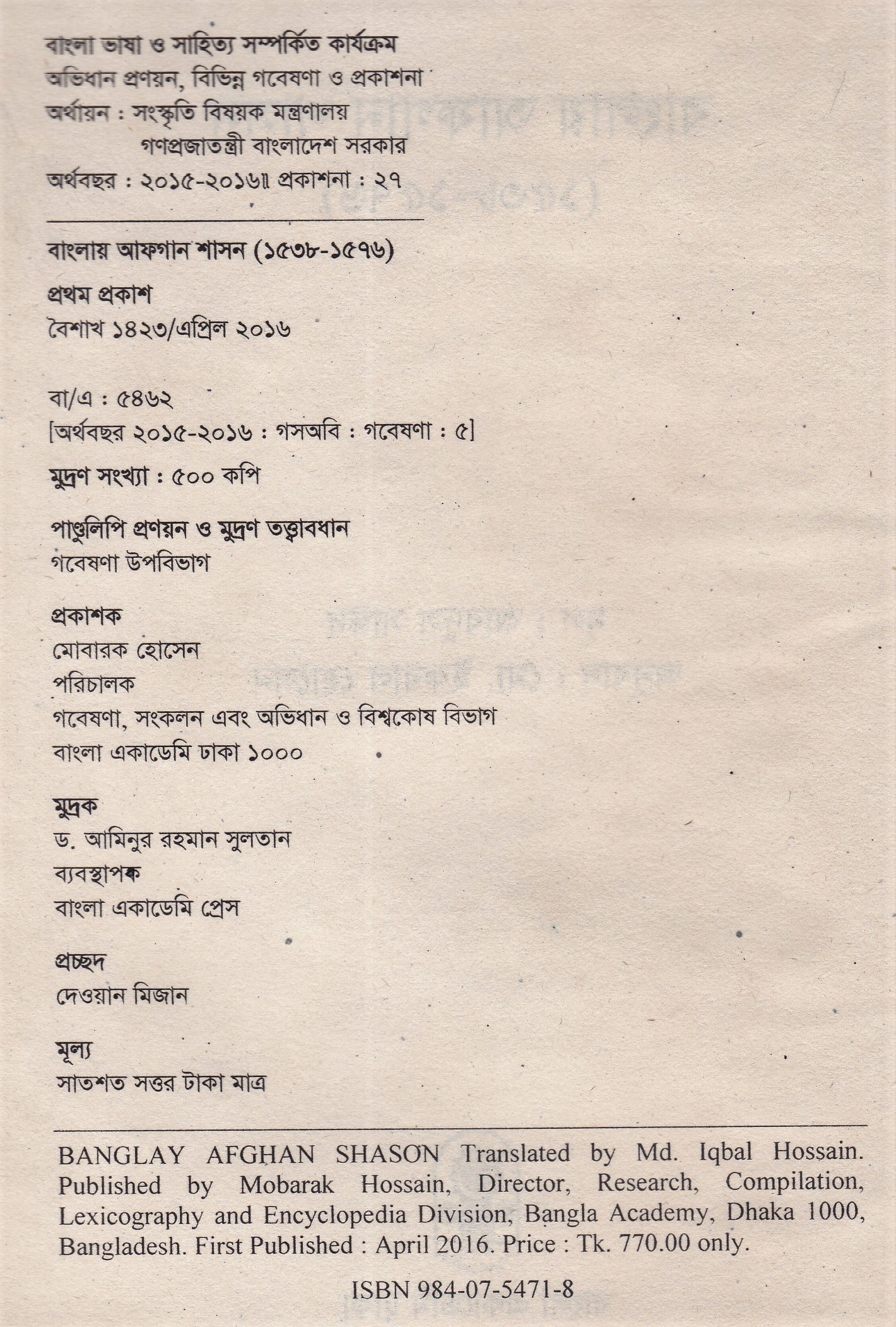 | ১ম প্রকাশ | এপ্রিল ২০১৬ |