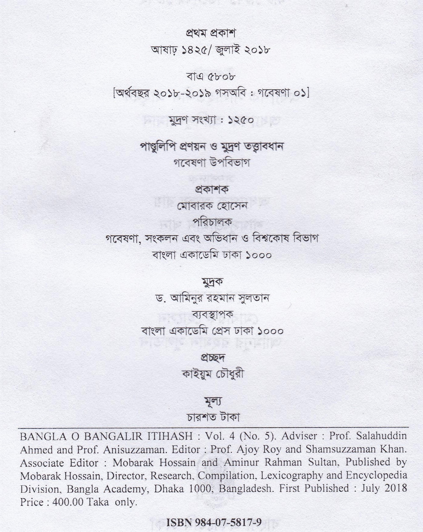 | ১ম প্রকাশ | জুলাই ২০১৮ |
