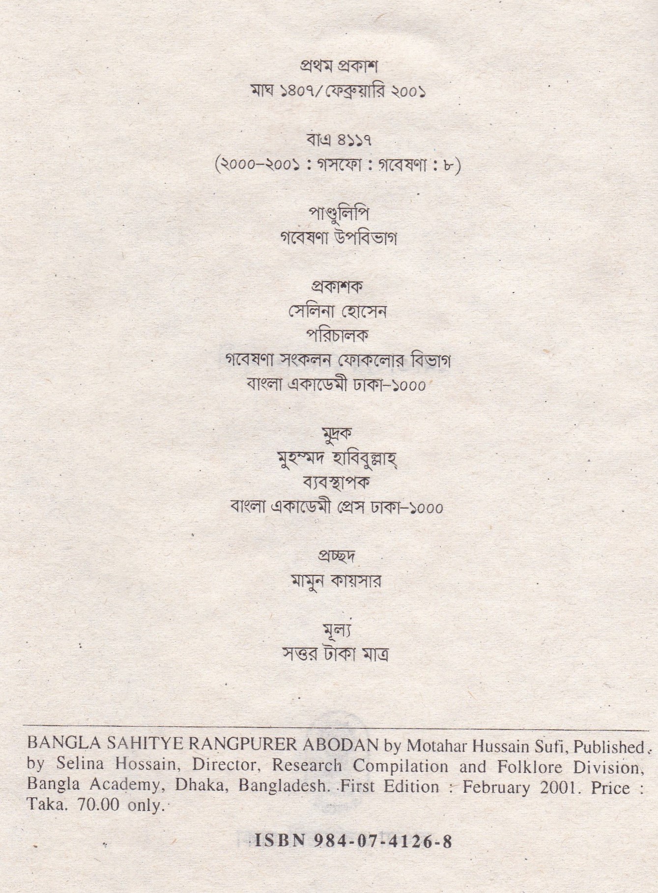 | প্রকাশক | বাংলা একাডেমি |