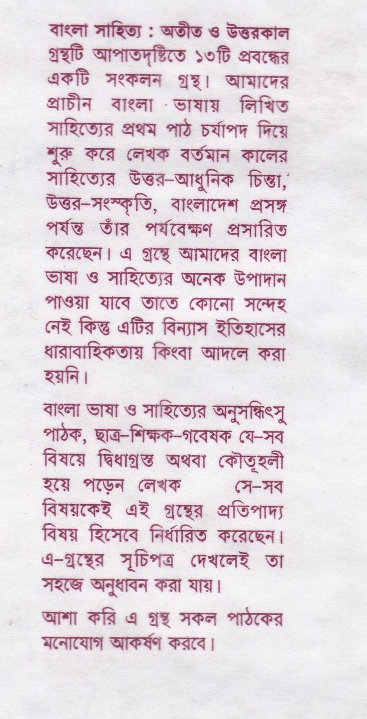 বাংলা সাহিত্য : অতীত ও উত্তরকাল